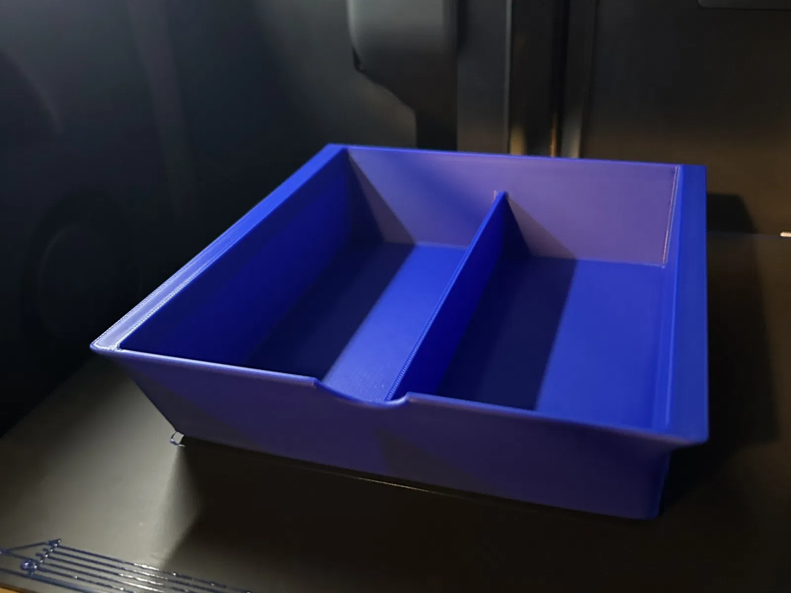 Thiết kế khay để giữ các vật nhỏ/kính râm bên trong bảng điều khiển phía trước của Tesla model Y 2023.