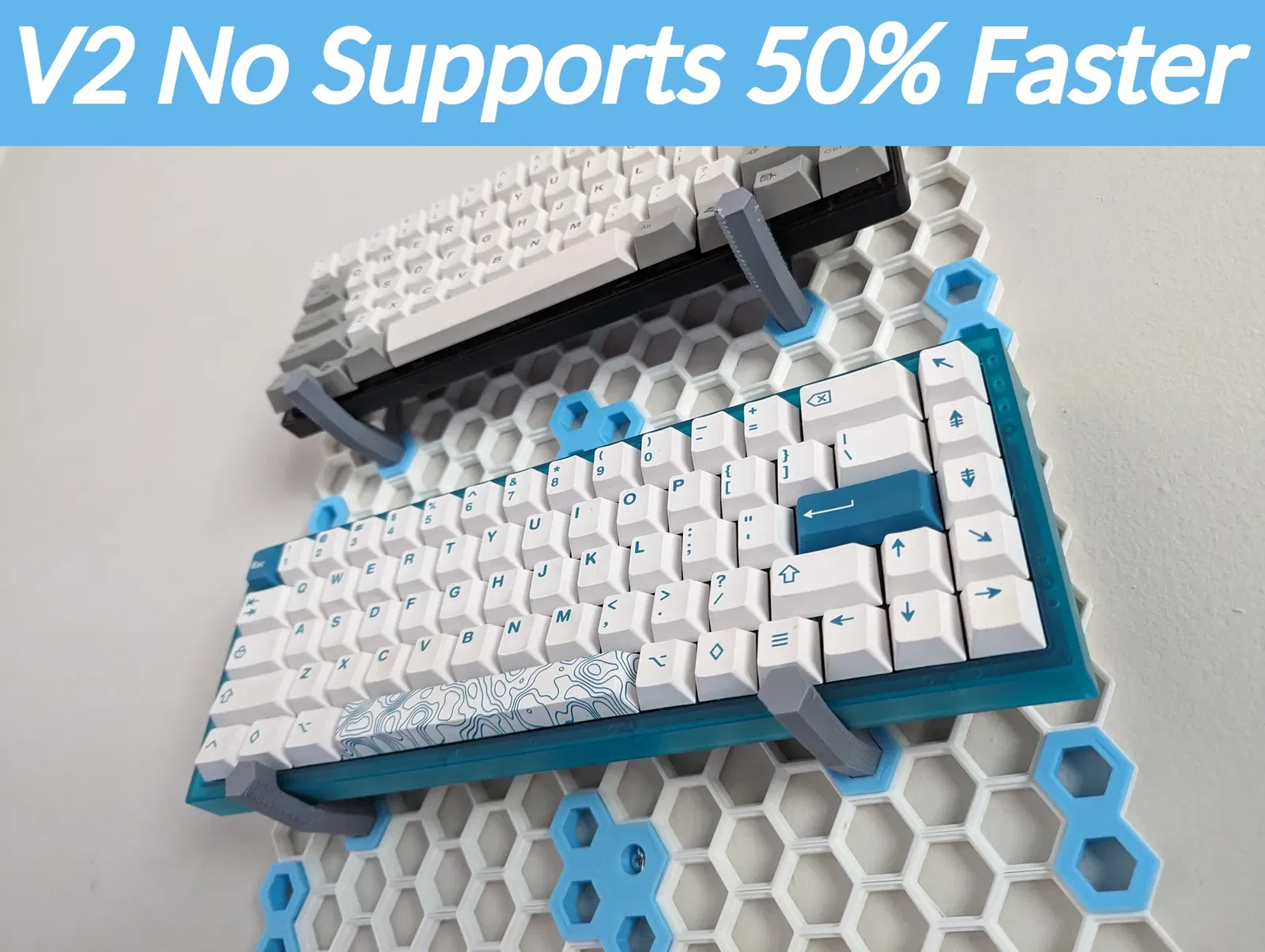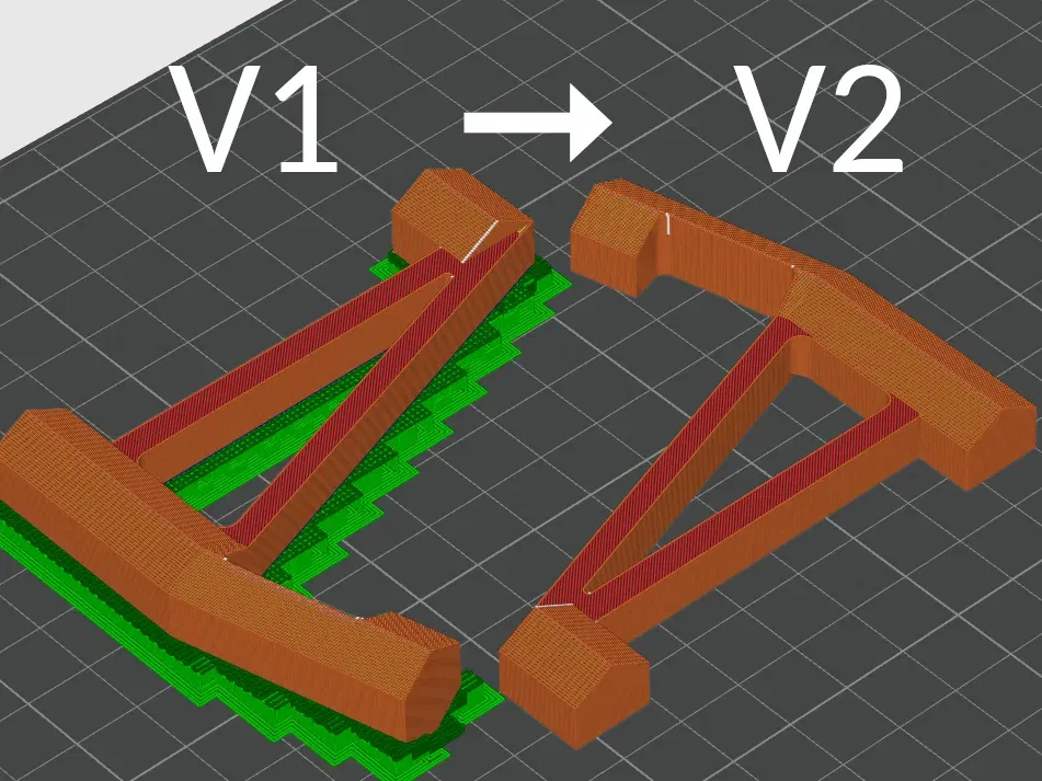V2 cắt bớt hình dạng 'đáy' của hình lục giác cho phép nó in phẳng. Sau một loạt thử nghiệm; hình dạng mới này không ảnh hưởng đến độ bền của nó, vì nó vẫn lấp đầy các phần dọc rộng nhất của lỗ lục giác một cách khít khao. Điều này loại bỏ sự cần thiết phải hỗ trợ và giảm thời gian in xuống một nửa!