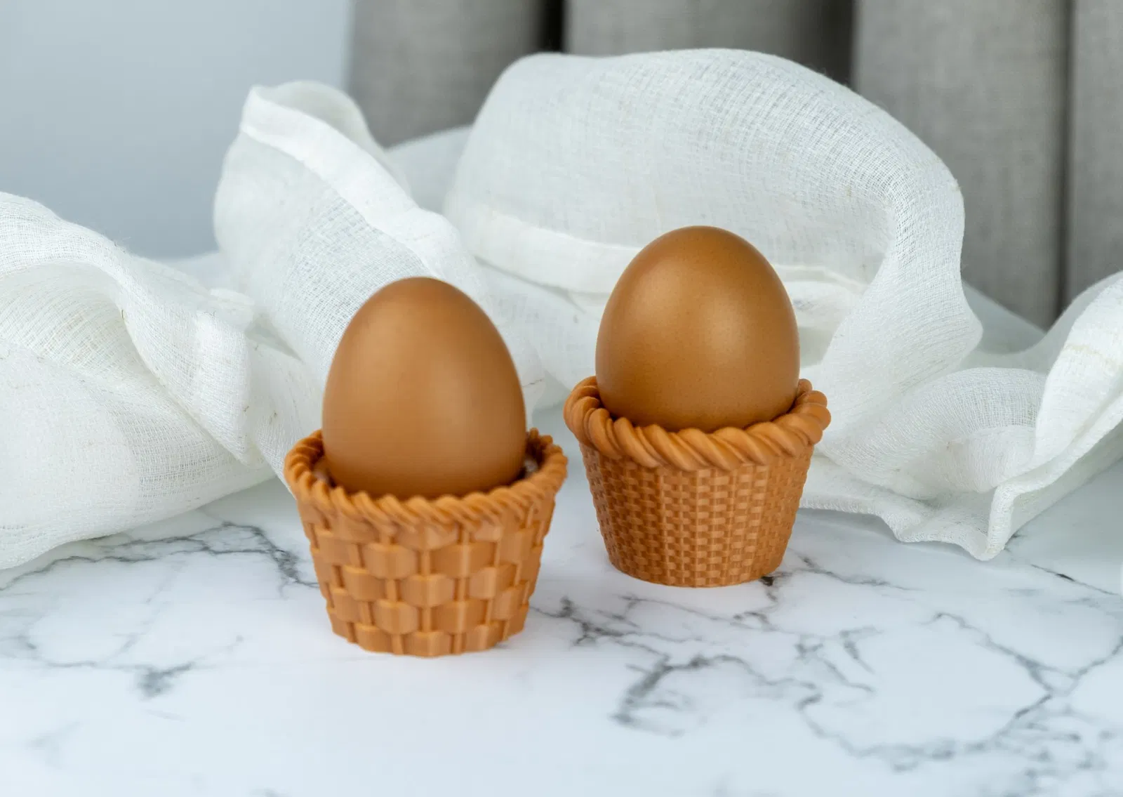 Bộ Giá Đỡ Trứng Phục Sinh là một bộ sưu tập giỏ kiểu dệt 3D in đẹp mắt, hoàn hảo để trưng bày những quả trứng được trang trí trong mùa lễ Phục Sinh. Kết cấu giỏ chi tiết mang lại cảm giác ấm cúng, thủ công, khiến chúng trở thành một bổ sung duyên dáng cho các bàn tiệc lễ hội, các màn trưng bày vui tươi, hoặc thậm chí là những giá đỡ đồ ăn nhỏ.