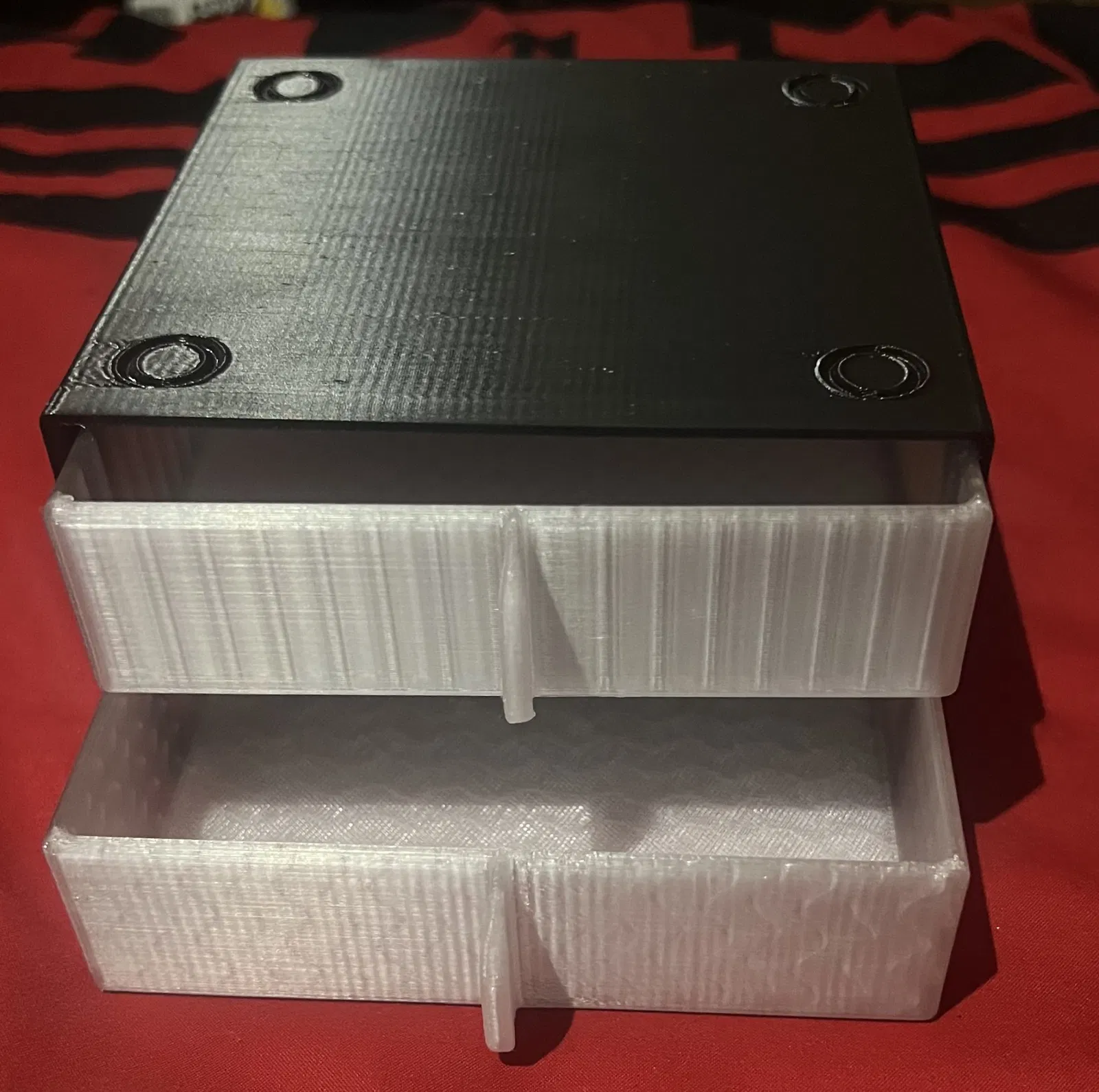 TÔI ĐANG XEM MỘT SỐ NGĂN KÉO MODULAR VÀ TÌM THẤY DỰ ÁN NHỎ NÀY CẢM ƠN easyterm. NHƯNG TÔI NHẬN THẤY NÓ KHÔNG CÓ VỊ TRÍ Ở ĐẦU ĐỂ LÀM CHO CHÚNG MODULAR/CÓ THỂ CHỒNG LÊN NHAU NÊN TÔI ĐÃ THÊM RÃNH ĐỂ CÓ THỂ CHỒNG CHÚNG LẠI. TÔI CHƯA IN TOÀN BỘ HỘP NHƯNG TÔI ĐÃ CẮT ĐẦU VÀ ĐÁY CỦA NÓ THÀNH 2 PHẦN ĐƯỢC IN VÀ CHÚNG PHÙ HỢP! ĐÂY LÀ BÀI ĐĂNG ĐẦU TIÊN CỦA TÔI TRÊN PRINTABLES! TÔI HY VỌNG ĐIỀU NÀY GIÚP ÍCH CHO AI ĐÓ! HÃY XEM MỘT SỐ SẢN PHẨM!