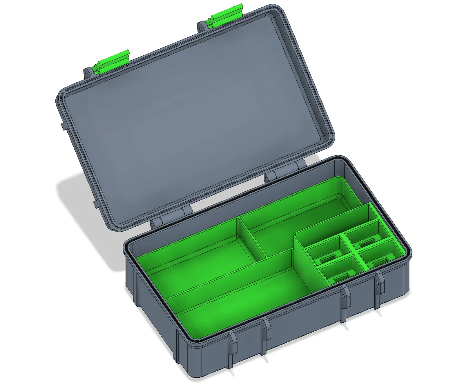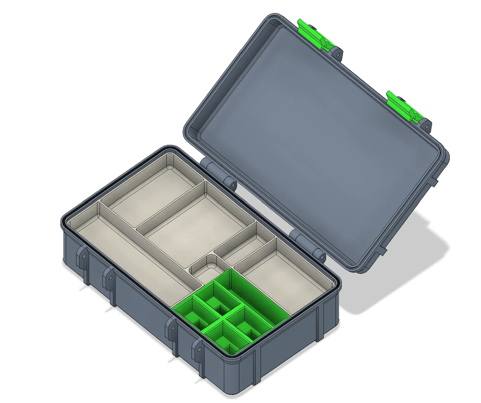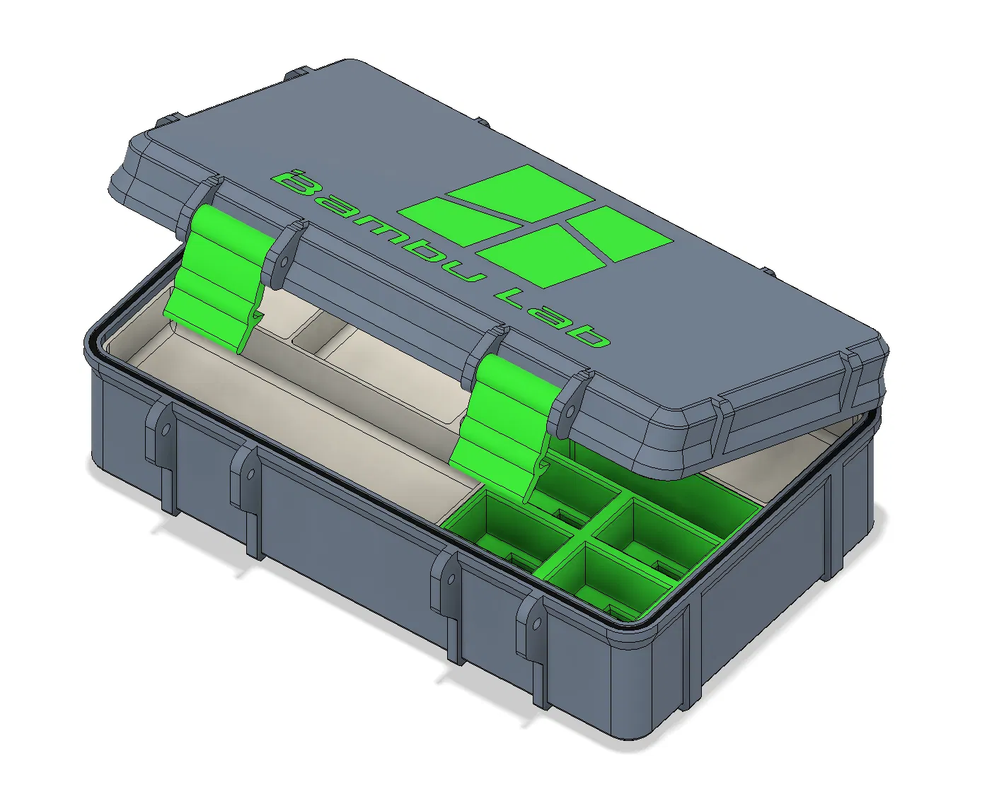 Tôi đã tạo một hộp đựng chống sốc (Rugged Case) tùy chỉnh, dựa trên nhiều phiên bản khác nhau, để lưu trữ phụ kiện Bambulab. Phiên bản này đã được cập nhật để hỗ trợ cả cờ lê lục giác đi kèm với X1C.