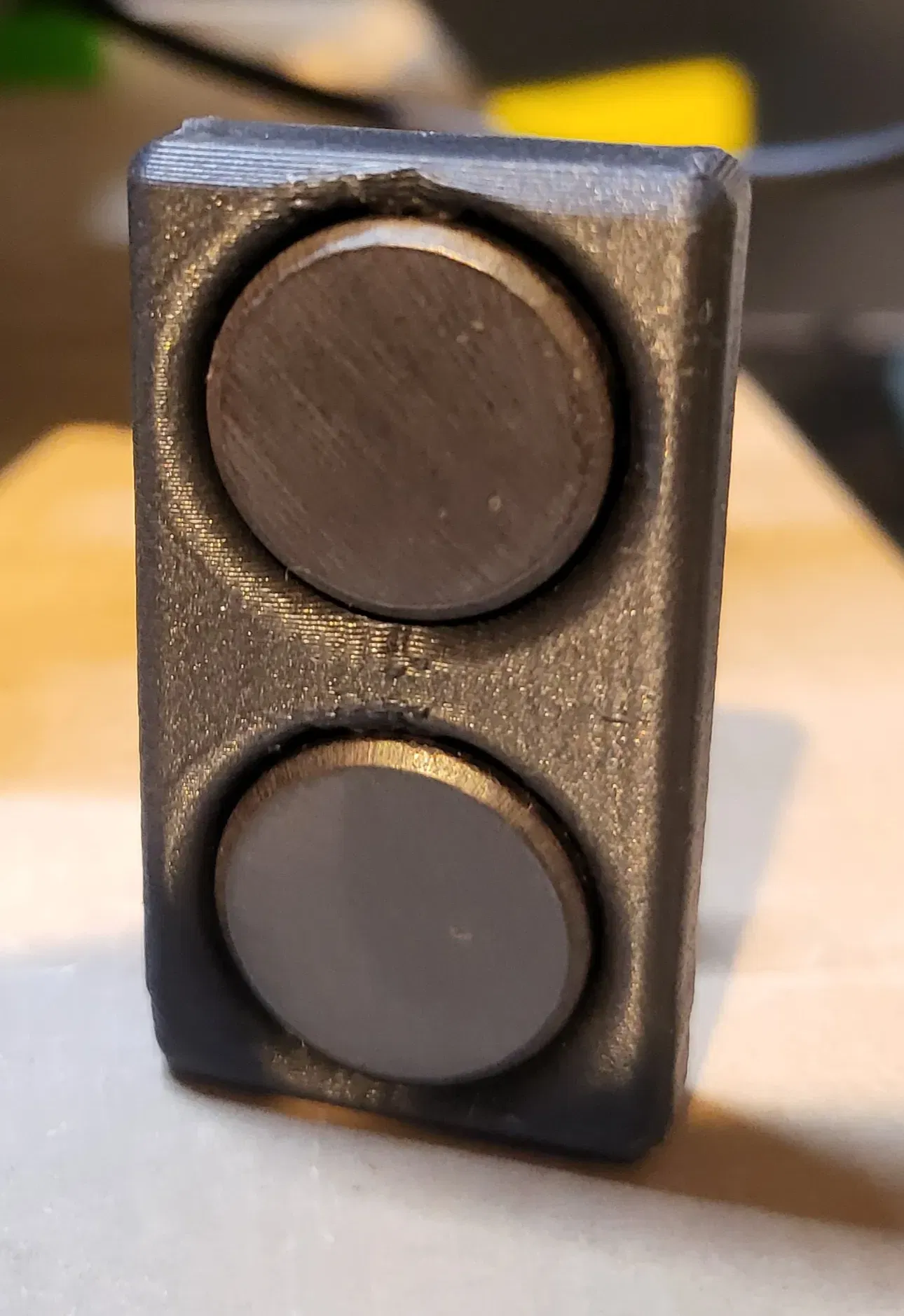 Sau thiết kế trước đó, tôi đã tinh chỉnh nó để chỉ còn 2 nam châm lớn hơn (18mm x 5mm hình tròn).