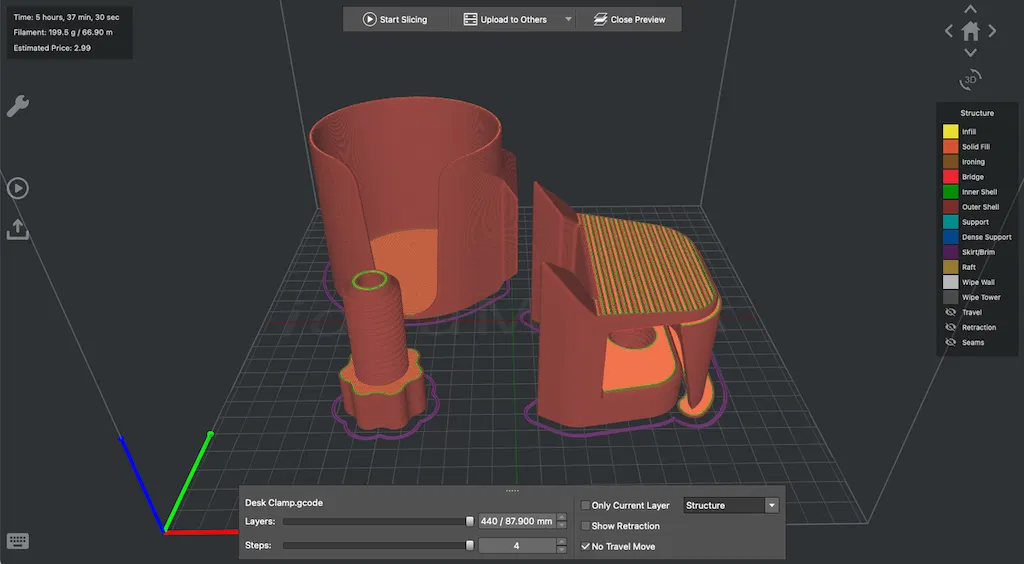 Có ba loại giá đỡ cốc với các mặt khác nhau để sử dụng tùy thuộc vào vị trí mong muốn của bạn, cũng như hai tùy chọn cho kẹp - một loại có hỗ trợ tích hợp và một loại không có hỗ trợ. Hỗ trợ tích hợp hoạt động tốt nếu máy của bạn có thể xử lý các cầu nối tốt. Bạn cũng có thể sử dụng mẫu hỗ trợ tích hợp kết hợp với các hỗ trợ trong slicer nếu muốn.