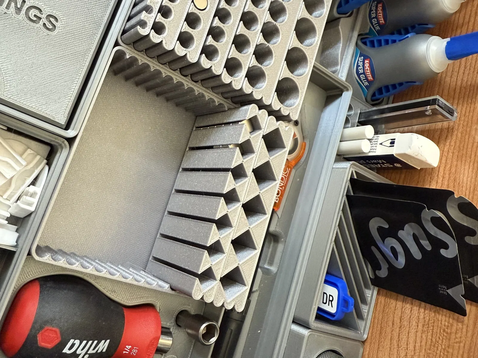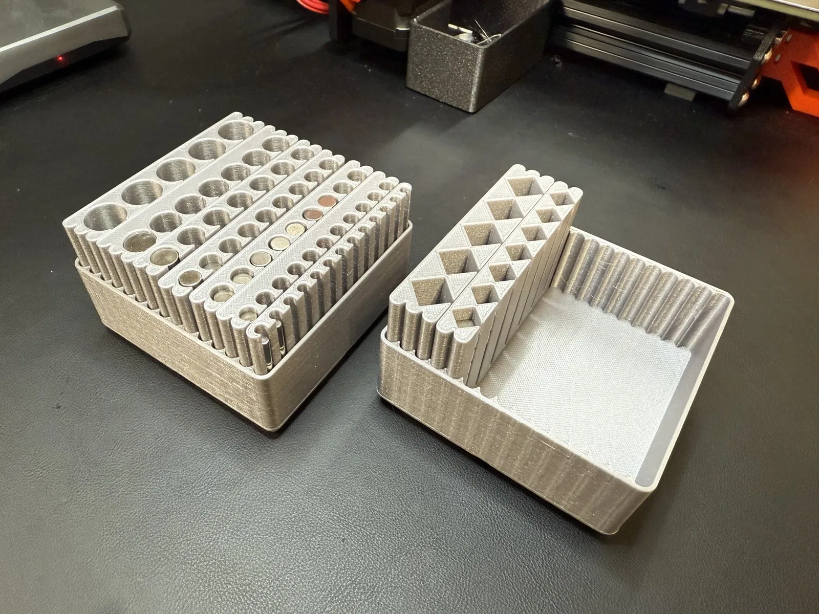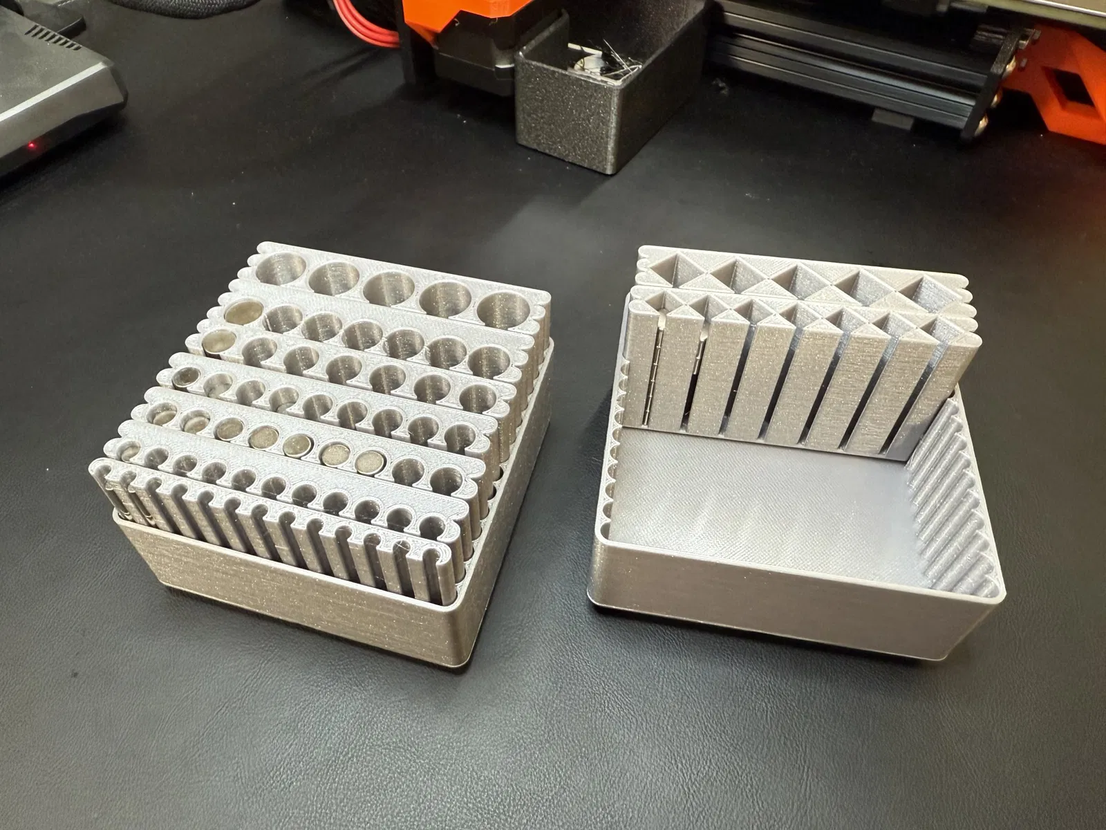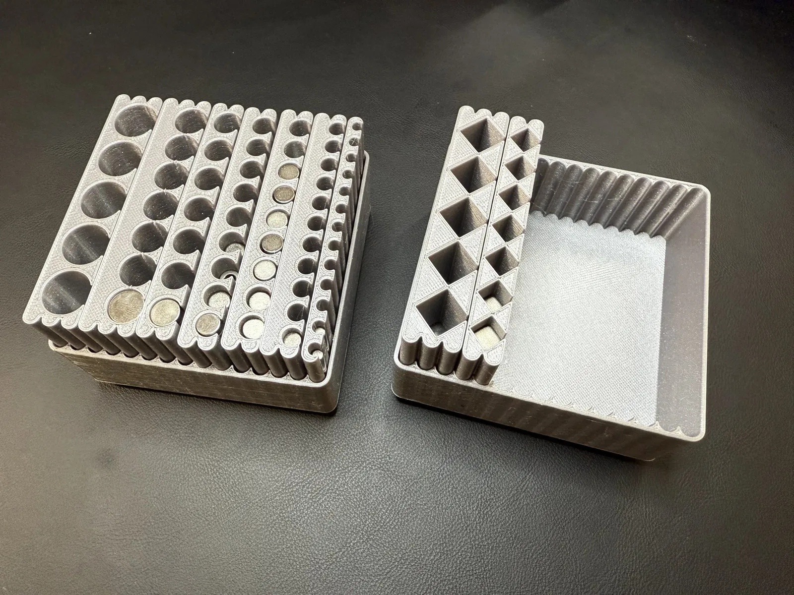 Tôi đã chán việc chỉ có một thùng gridfinity với một khối hình vô định hoặc những nam châm ngẫu nhiên dính lại với nhau, vì vậy tôi đã tạo ra hệ thống mô-đun này để giữ chúng.