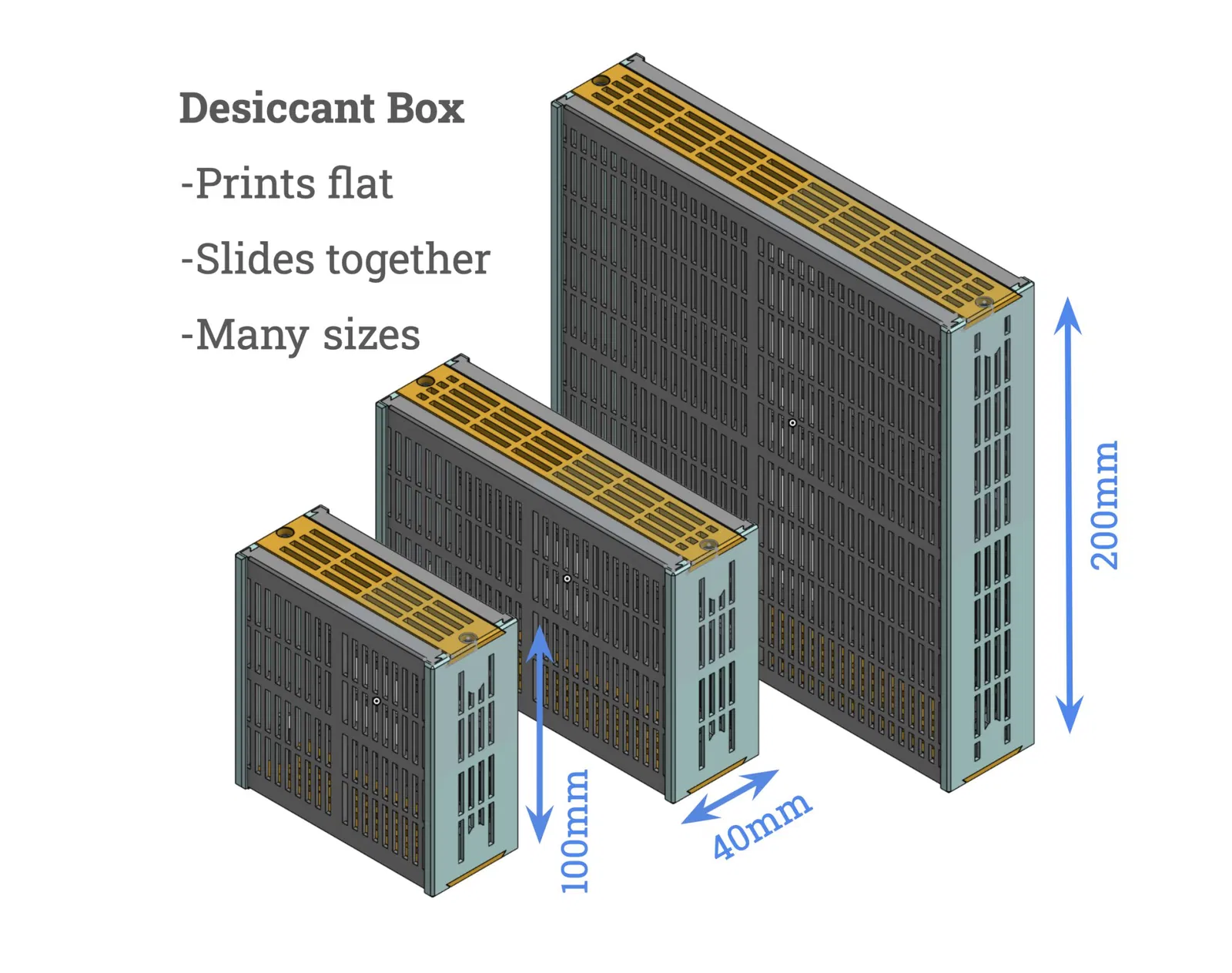 Cảnh báo: nếu bạn in những cái thật lớn (lớn hơn 200mm), tôi thấy rằng các bên có thể bị phồng lên một chút theo thời gian do trọng lượng của hút ẩm nếu bạn in bằng PLA. Vì vậy, đối với những cái lớn hơn, tốt nhất là sử dụng PETG hoặc ASA/ABS…