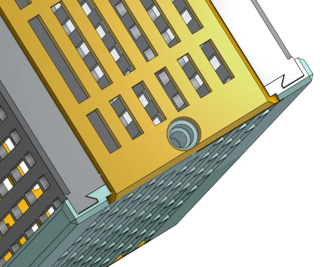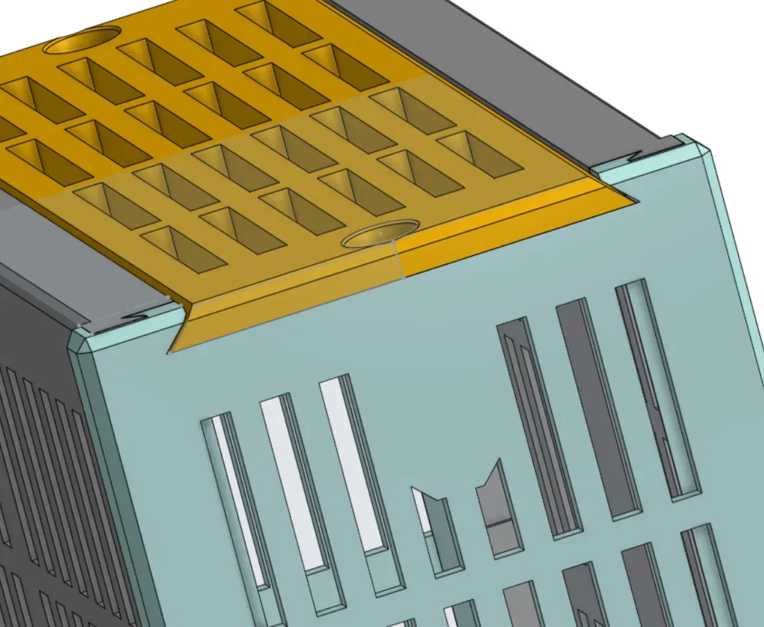Trượt các mảnh trước/sau vào các khe cắt nửa dovetail trong các mảnh bên (những cái có đầu vít lớn hơn). Sau đó thêm mảnh bên khác bằng cách căn chỉnh các dovetail và trượt lại với nhau với phần trước/sau.