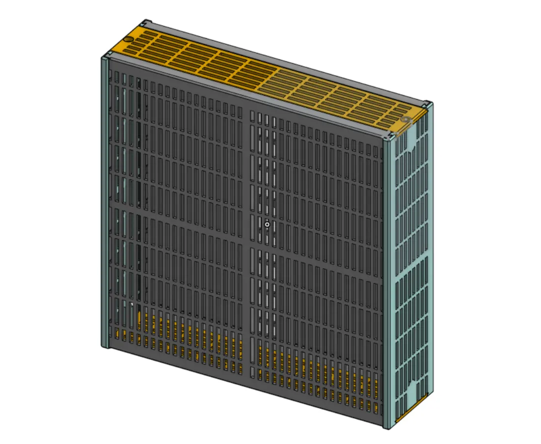 In 2 nắp, 2 bên, và 2 mặt trước. Thiết kế hoàn toàn đối xứng.