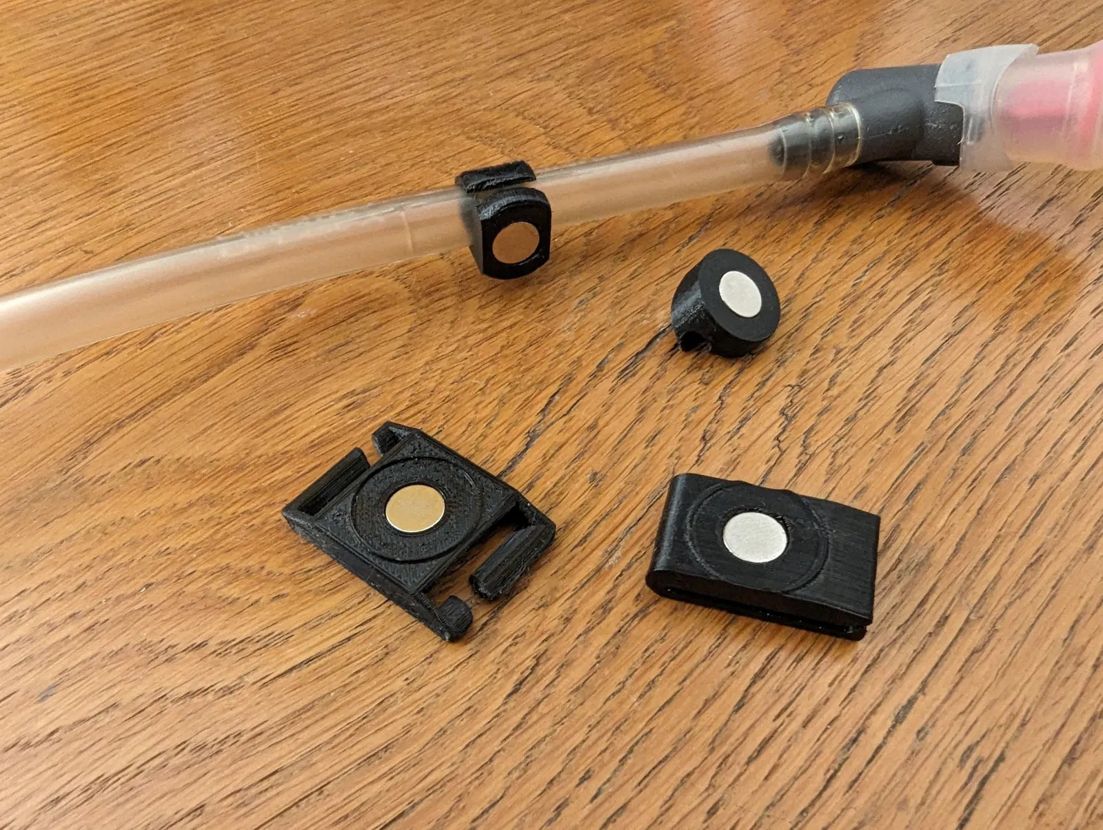 Đây là một bộ sưu tập các phụ kiện từ tính cho ống của túi nước, để dễ dàng gắn nó lên ba lô của bạn.