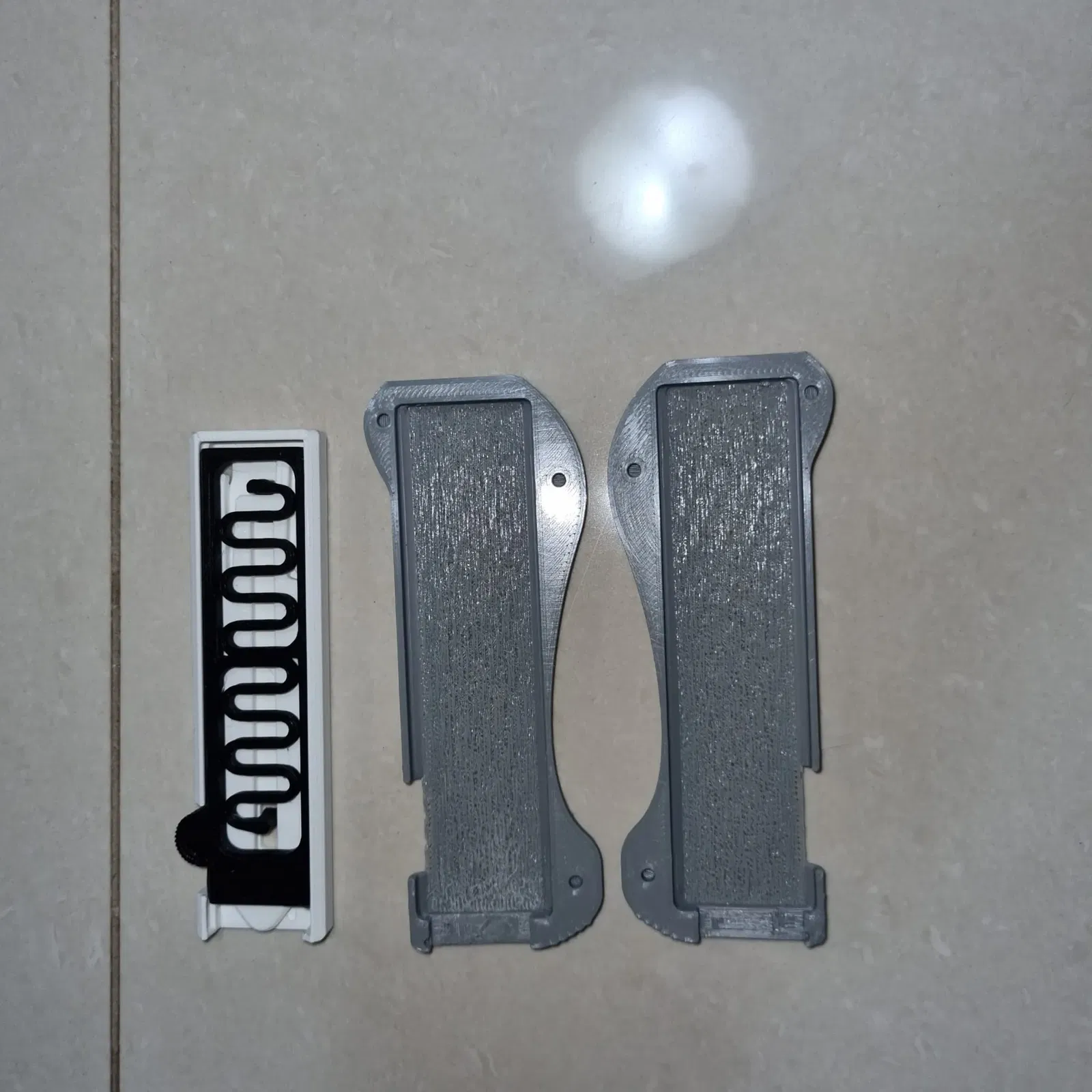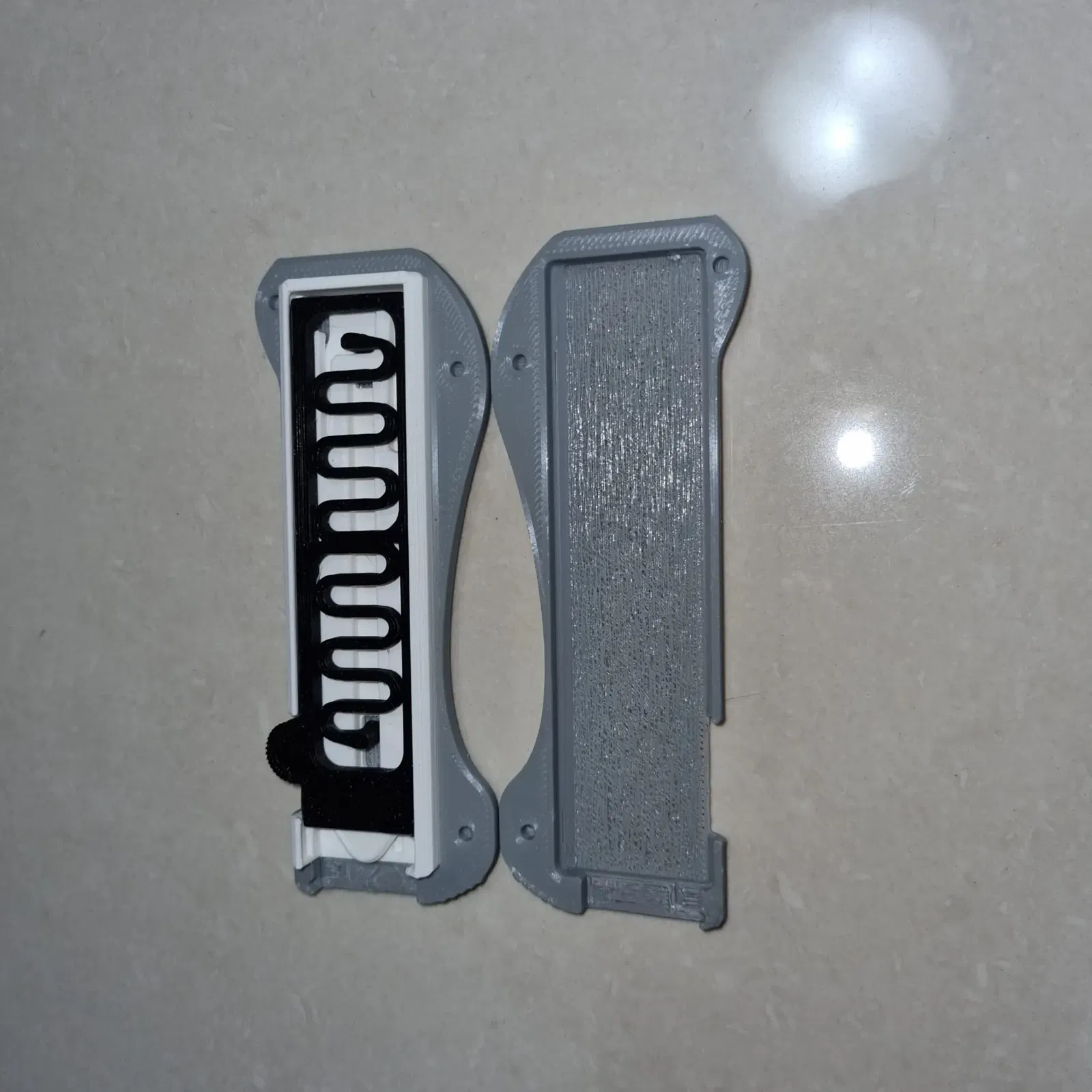 Tôi in tất cả các bộ phận bằng PLA. Tôi khuyên bạn nên in lớp da trên một mặt phẳng mịn, mặt phẳng hướng xuống với hỗ trợ cây, và tất cả các bộ phận của con dao với chức năng ủi cho tất cả các bề mặt trên, để có độ mịn. Tất cả các bộ phận nên khớp chặt, bạn có thể muốn in các chốt 3x2.5mm cho các lớp da và/hoặc dán hai bên lại với nhau.