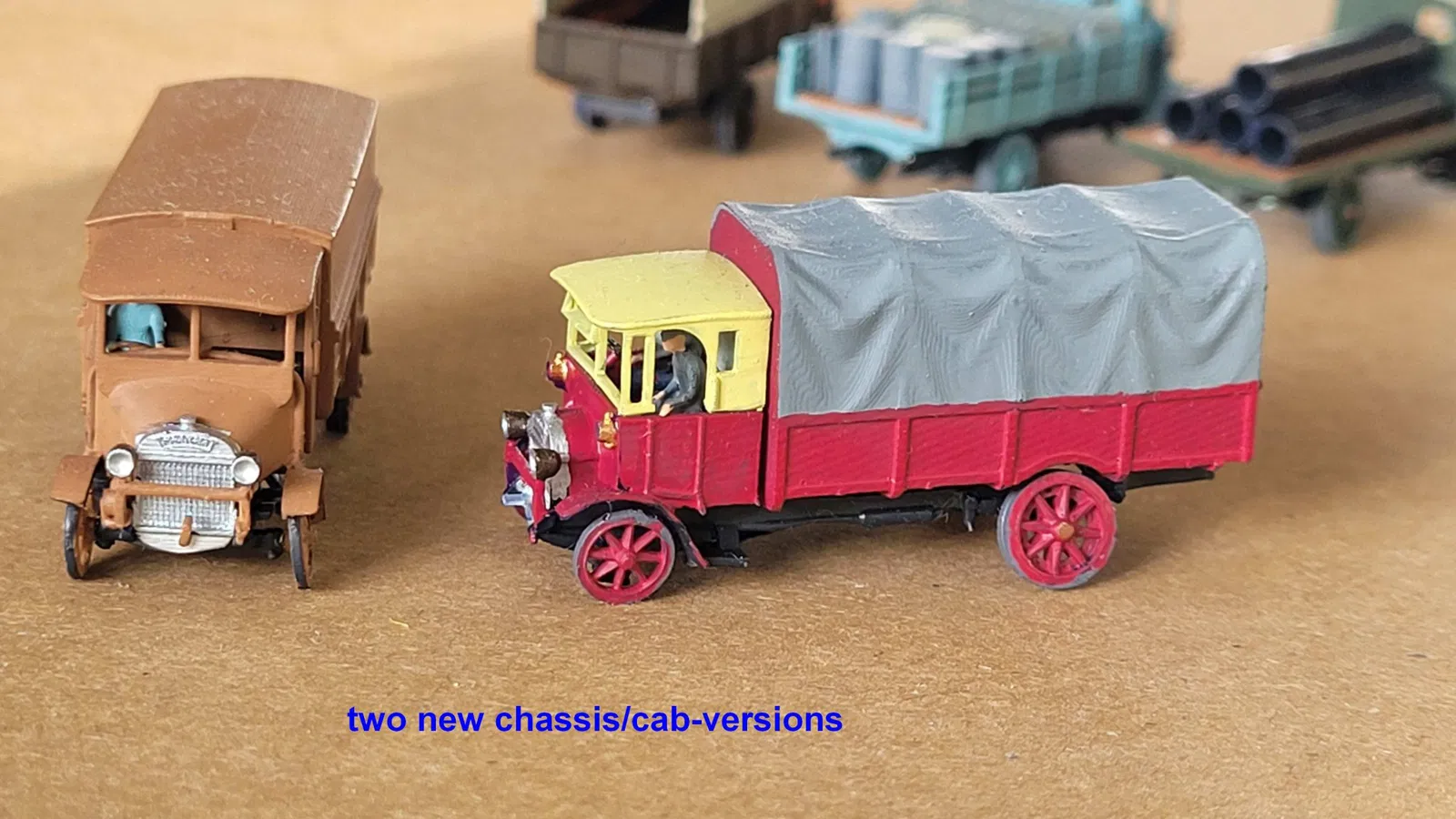 Tôi đã có niềm vui tạo ra một số thân xe khác. Bất kỳ thân xe nào cũng có thể hoạt động với bất kỳ khung gầm nào! Cũng có hai biến thể khung gầm/cabin khác, một tôi sẽ gọi là phiên bản “cuối giữa” (với cửa sổ phía trước), trong khi cái kia là phiên bản “sớm muộn” (cabin muộn, nhưng vẫn với lốp rắn). Bánh trước và cabin sẽ được lấy từ thiết kế gốc. Sau khi in và sơn thân xe có nóc rắn và thân xe có bạt trong một mảnh, tôi nhận ra rằng phiên bản này dễ in hơn, nhưng hơi khó sơn bên trong. Vì vậy, tôi đã tạo ra một phiên bản tách rời của những thân xe này (phần dưới là giống hệt nhưng phần trên có thể là rắn hoặc có bạt). Vì vậy, bạn có thể chọn in một mảnh hoặc thành hai phần. Sẽ thật tuyệt nếu thấy hình ảnh phiên bản mô hình của bạn. Tất cả các mô hình đều có kích thước cho quy mô n của Anh (1:148). Giá trị chuyển đổi: Quy mô N lục địa, 1:160 -> 92. 5% Quy mô TT, 1:120 -> 123% Quy mô HO/H0, 1:87 -> 170% Quy mô OO/00, 1:76 -> 195% Quy mô O/0, 1:48 -> 308%