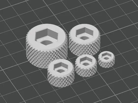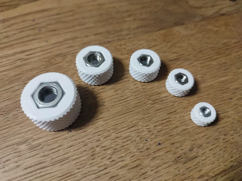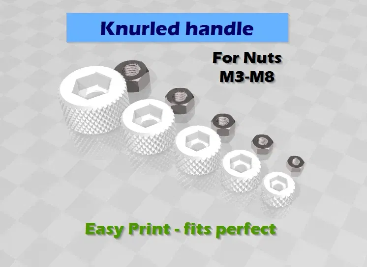 Mô hình tay cầm có rãnh cho đai ốc Hex từ M3 đến M8, phù hợp với vít ISO 4032/DIN 934. Dễ dàng sử dụng với lực nhỏ, có thể gắn keo để cố định.