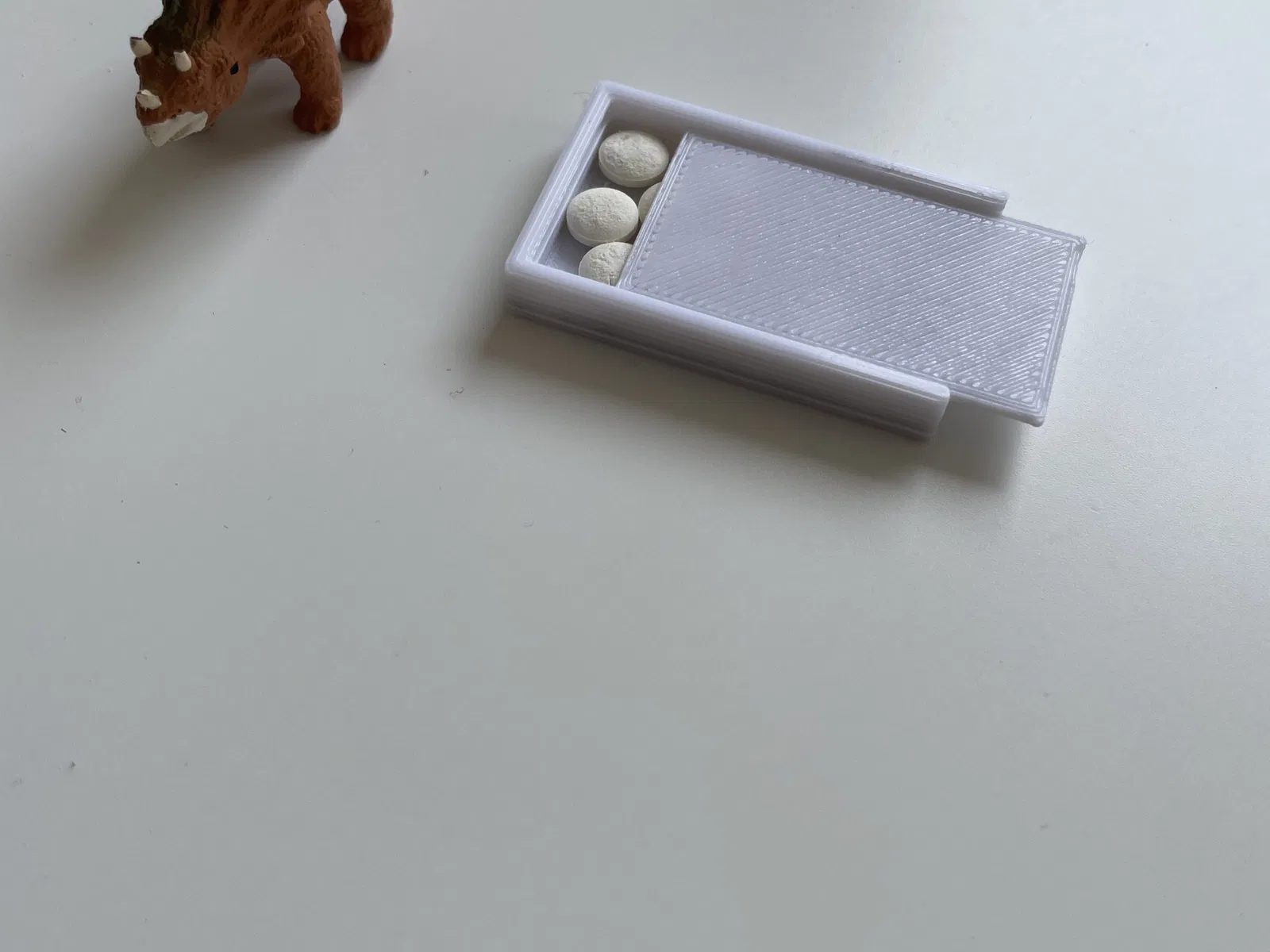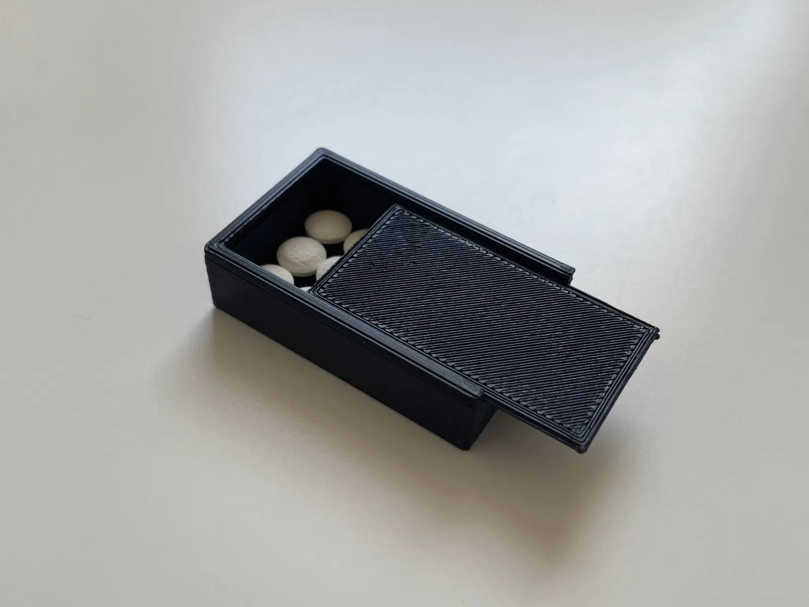 một hộp thuốc nhỏ mà tôi thiết kế cho viên thuốc lactose của mình để tối đa hóa tính di động. Nắp không tự trượt ra ngoài.