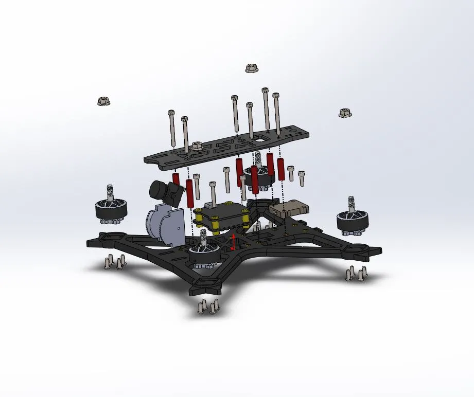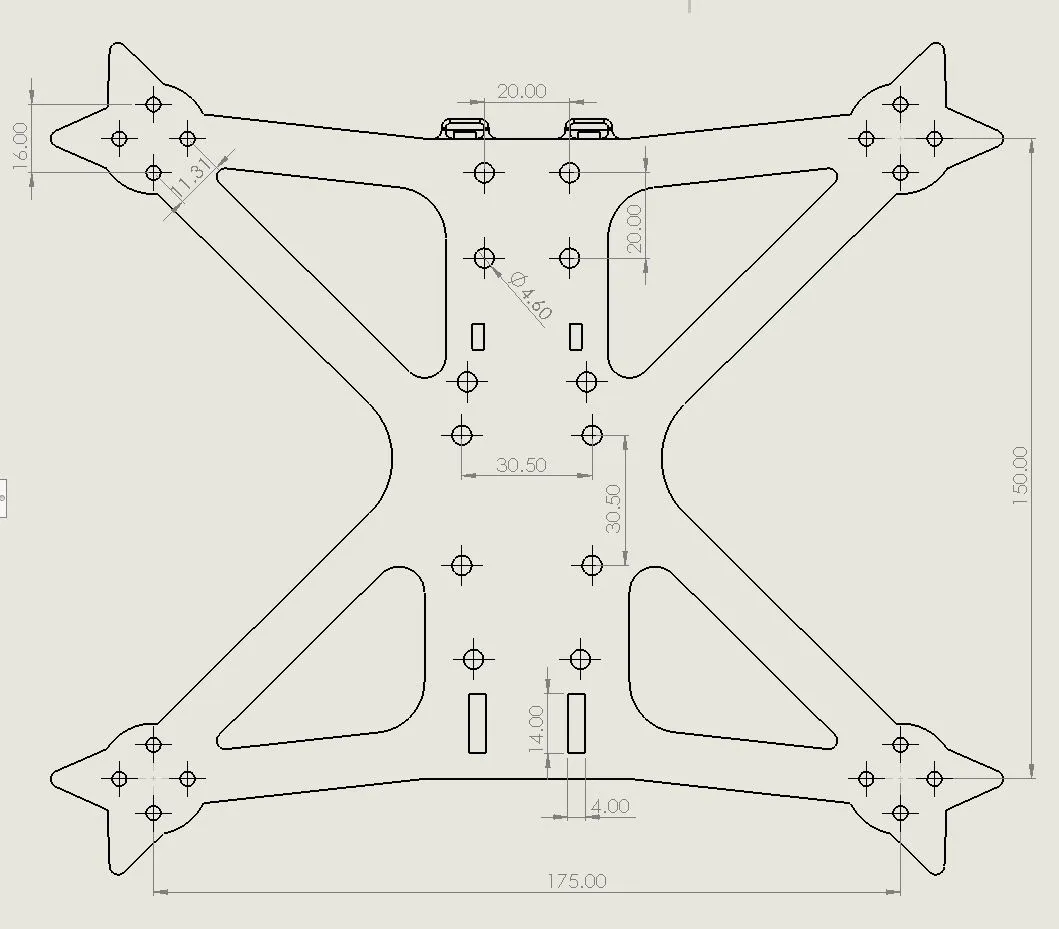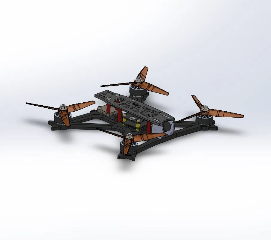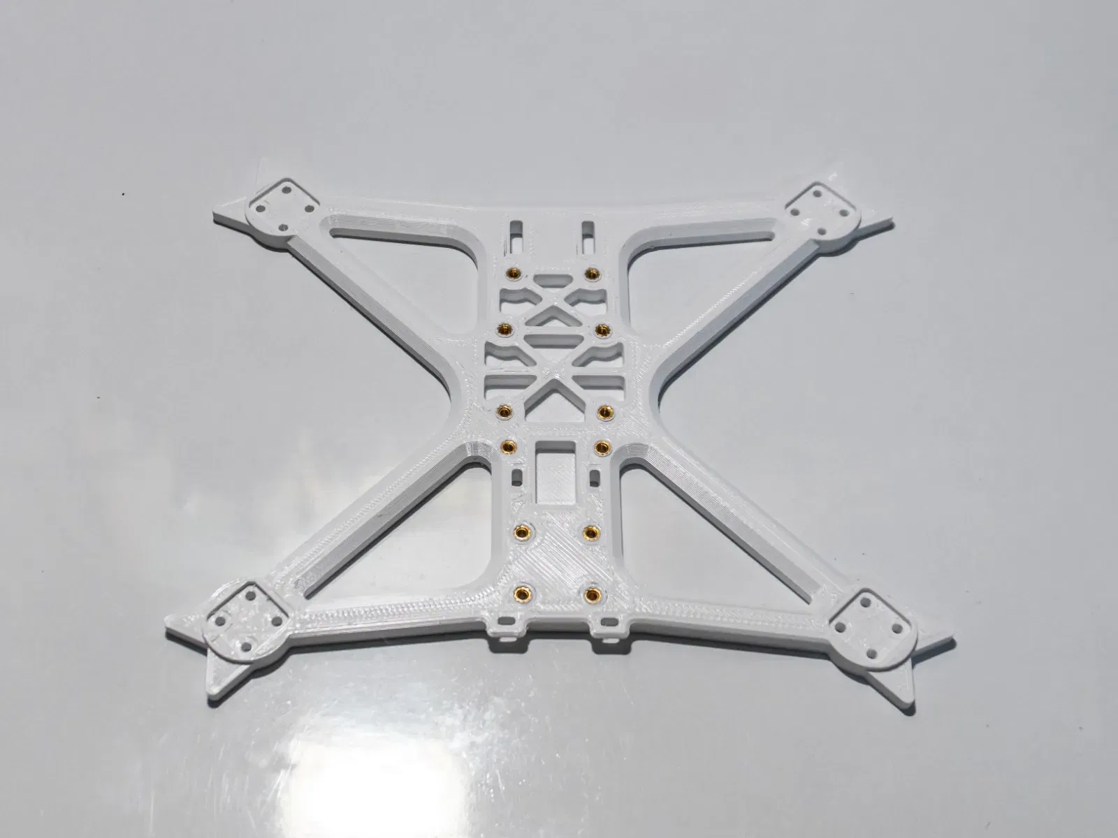 Một khung cho drone 5 inch mà tôi thiết kế, theo ý kiến không chuyên của tôi, tôi cảm thấy nó bay khá tốt. Tôi đã in nó từ PLA nhưng điểm nóng chảy của nó quá thấp và có lẽ tốt hơn khi in từ PETG/nylon/polycarbonate.
