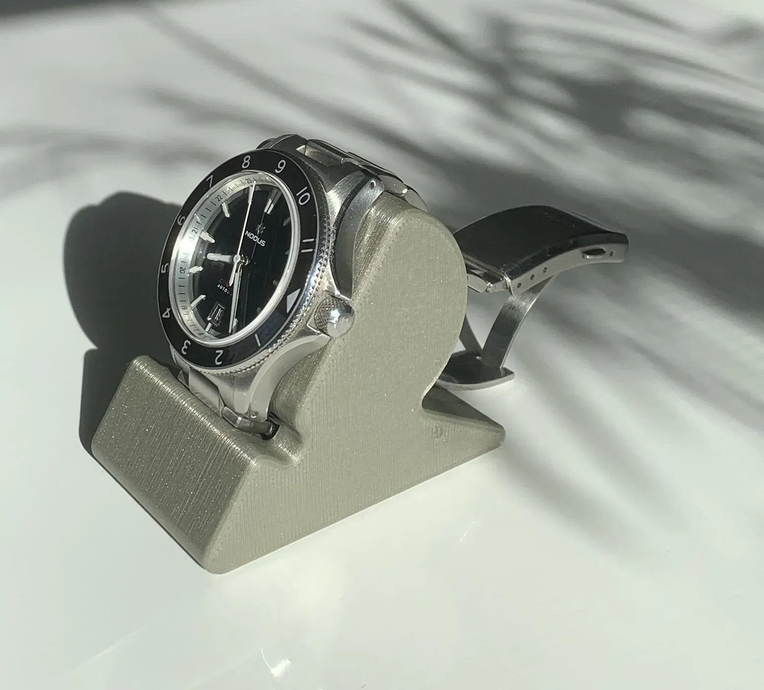 Một giá đỡ để giữ đồng hồ của bạn theo chiều thẳng đứng. Đồng hồ trượt vào giá đỡ từ bên trái và có một mép đỡ lugs giúp đồng hồ không bị trượt xuống. Nằm giá đỡ nghiêng để in mà không cần hỗ trợ.