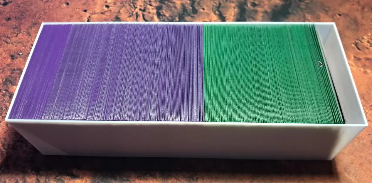 Các bộ chèn Arkham Horror LCG cung cấp thêm không gian để tổ chức thẻ và các thành phần bổ sung. Chúng có các lỗ ch perforation ở đáy, ngăn chặn thẻ trượt nhiều như trong bộ chèn gốc. Kích thước bộ chèn 242x94x64 mm. In trên Prusa MK3S+, chiều cao lớp 0.2.