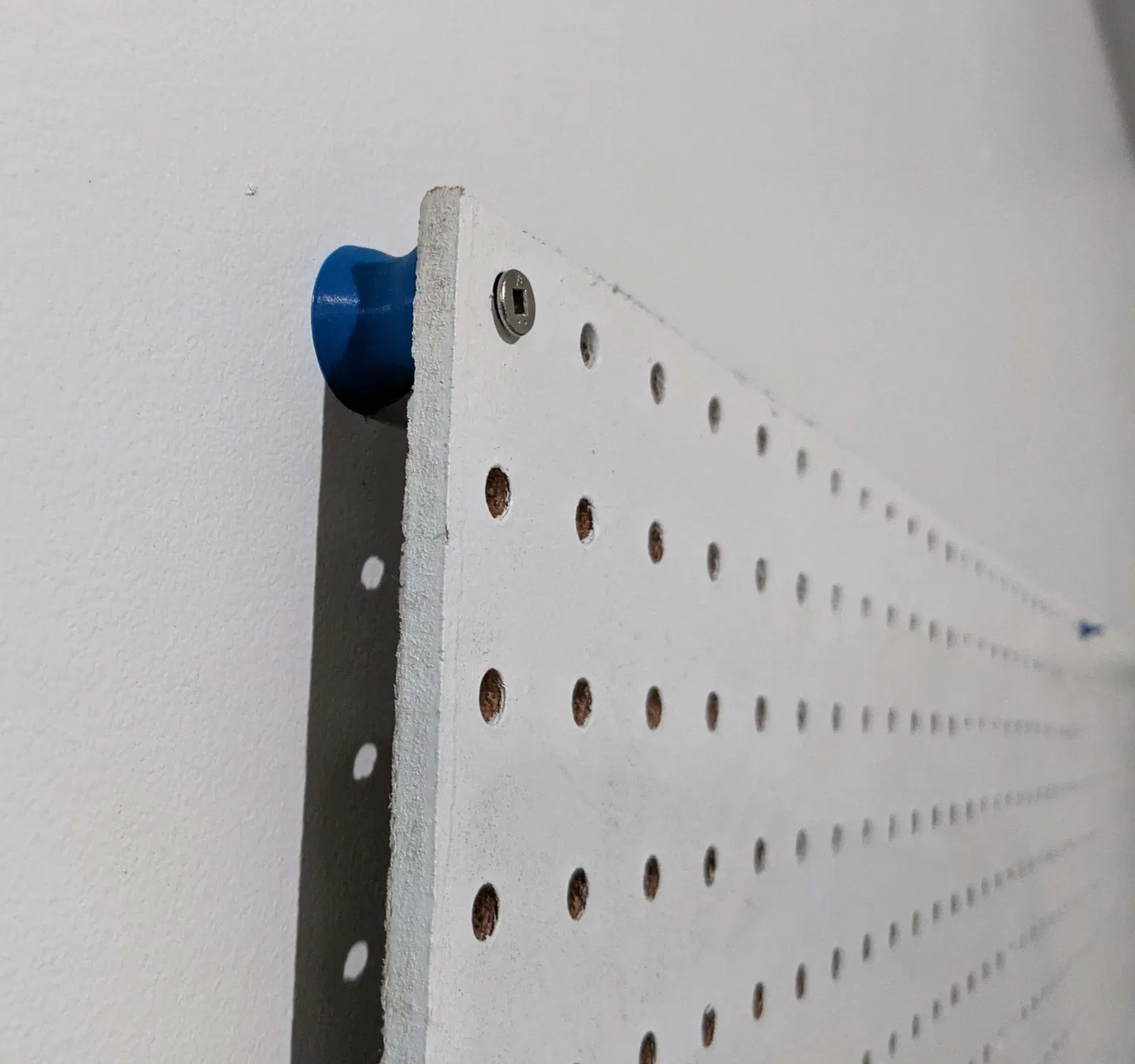 Tôi đã mua một tấm bảng ghim kích thước 8' x 4', dày 6mm (1/4"). Các lỗ lớn hơn ở 6.6mm (1/4") so với các lỗ thông thường 4.2mm (5/32") mà các móc 3mm của tôi được thiết kế cho. Có khoảng 60 móc với các hình dạng khác nhau, việc in một grommet để làm chặt vừa vặn hợp lý để các móc không rơi ra mỗi khi tôi lấy thứ gì đó từ bảng ghim. Chúng cũng trông thật đẹp!