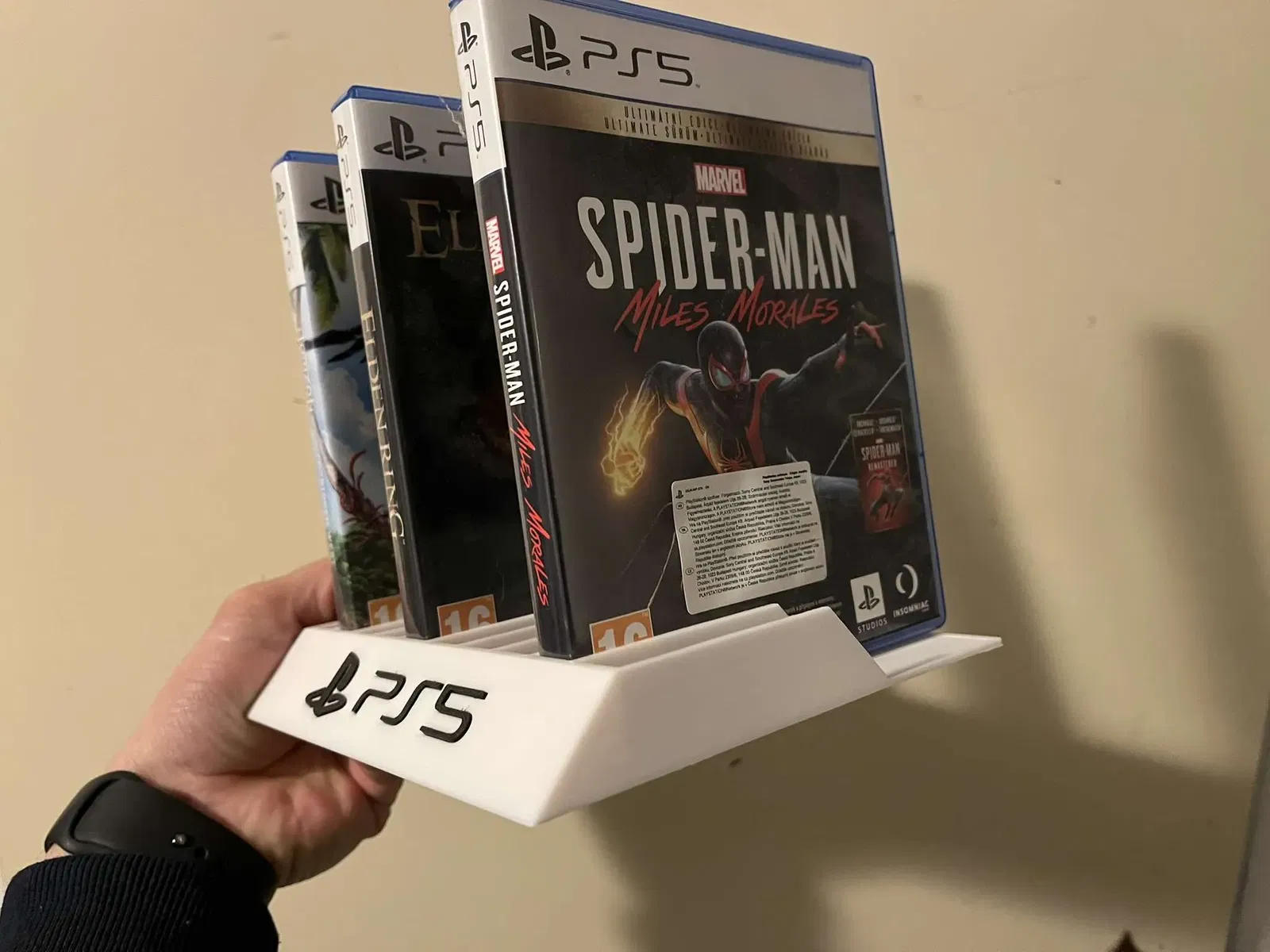 Tôi có một giá đỡ cho bạn, một giá cho Playstation 5, trò chơi PS5. Các trò chơi vừa vặn một cách hoàn hảo và logo tương thích với bản gốc. Có nhiều cải tiến trong phiên bản 2: thiết kế đẹp hơn, yêu cầu ít vật liệu hơn, bo tròn hơn để có vẻ hiện đại.