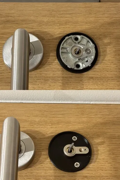 - In ấn cái này bằng nhựa có thể dẫn đến an ninh yếu hơn, vì vỏ này có thể bị gãy và rosette bên ngoài có thể bị tháo rời. Hãy cân nhắc đặt hàng phiên bản CNC bằng kim loại.
