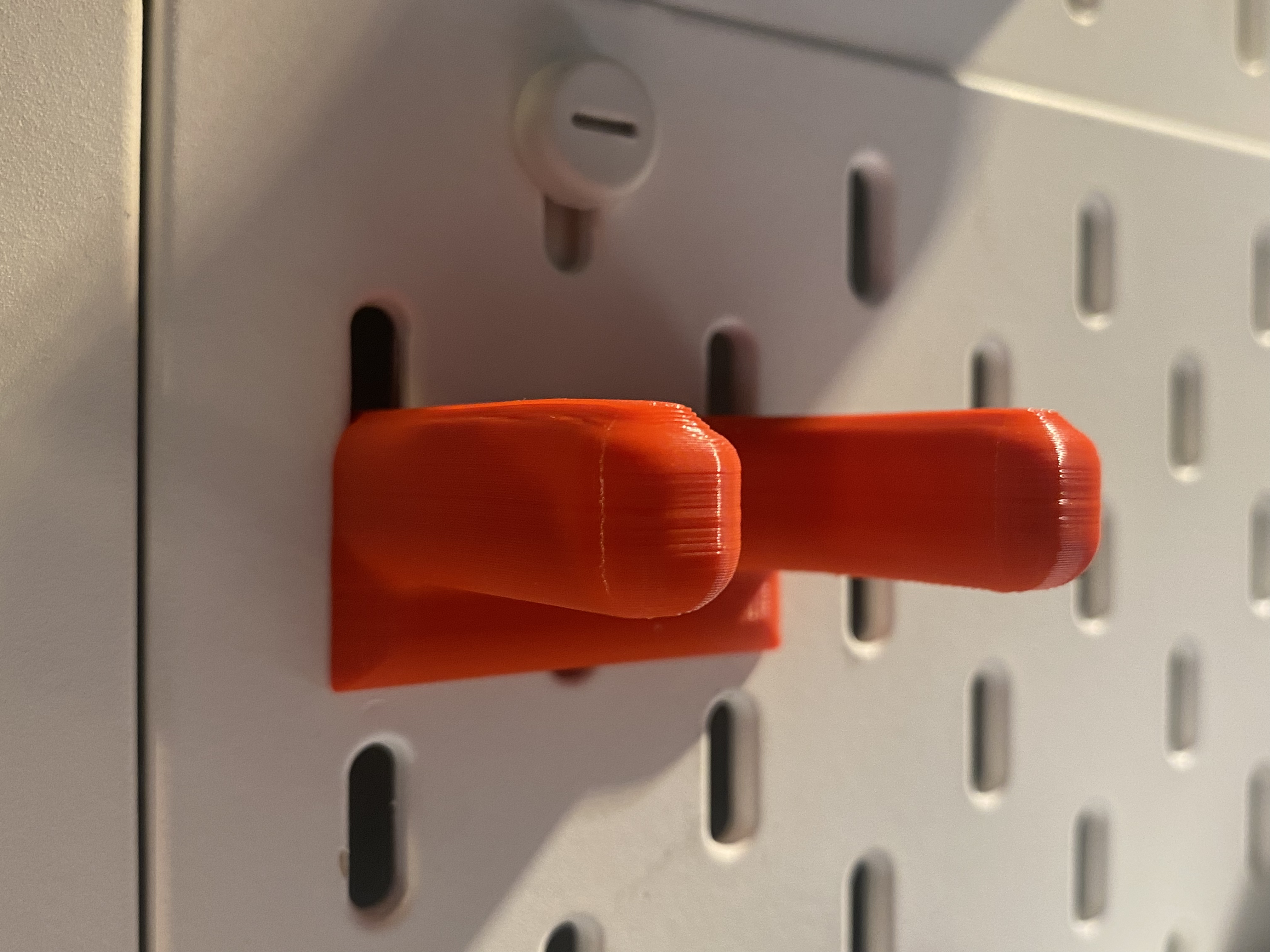 Sản phẩm in ra sẽ khít với Skadis. Nên in bằng PLA, PLA+, hoặc PETG.