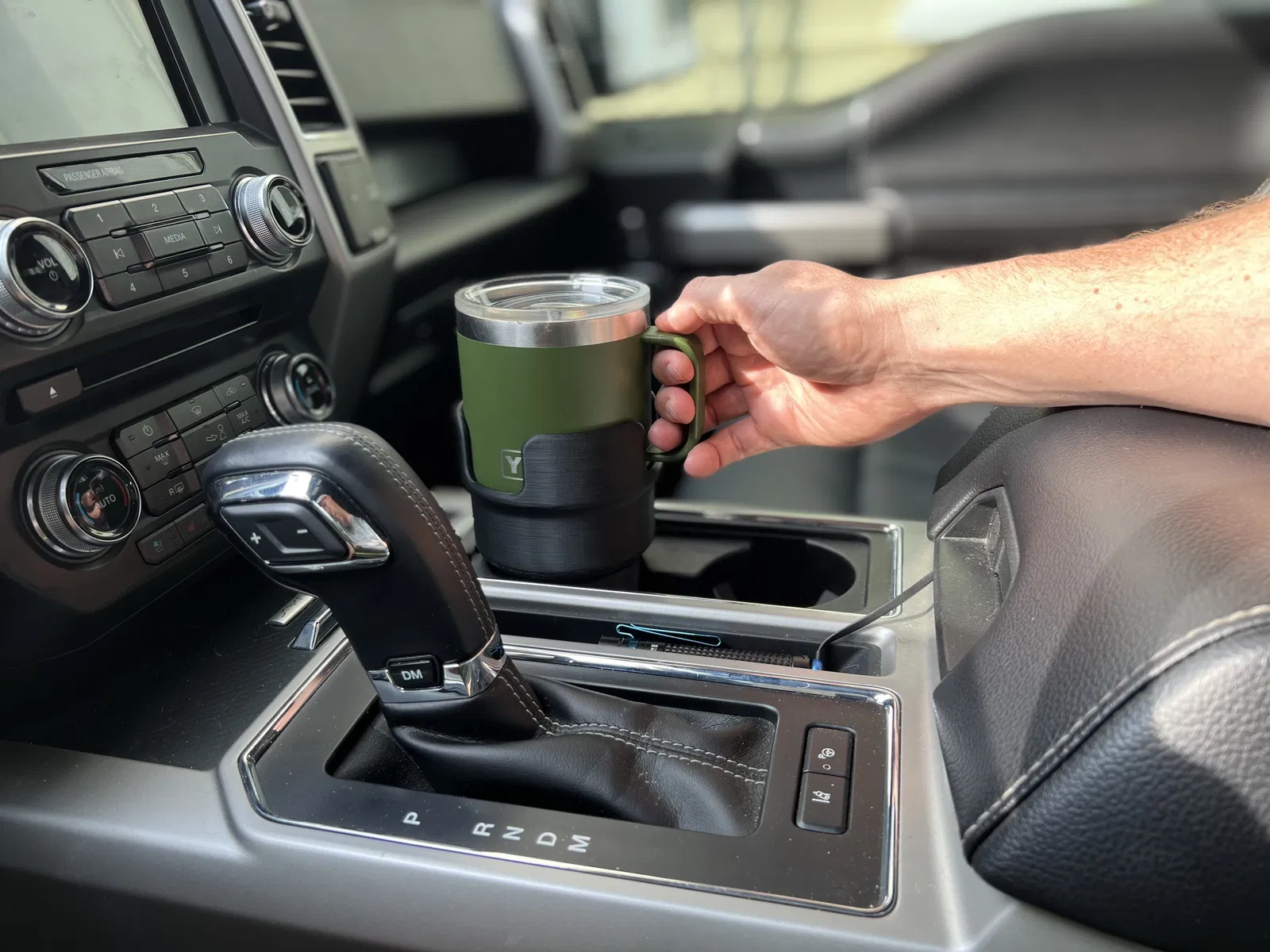 Tôi đã thiết kế bộ chuyển đổi này cho hộc đựng cốc trên chiếc F150 đời 2018 của mình để giữ vừa cốc Yeti Rambler 14oz hoặc chai Nalgene 32oz, ngăn chúng trượt trong xe tải. Nó nên phù hợp với các xe Ford F150 đời 2015-2020 và cũng đã được xác nhận phù hợp với xe Ram 1500 đời 2021 và Chevy Equinox đời 2021.
