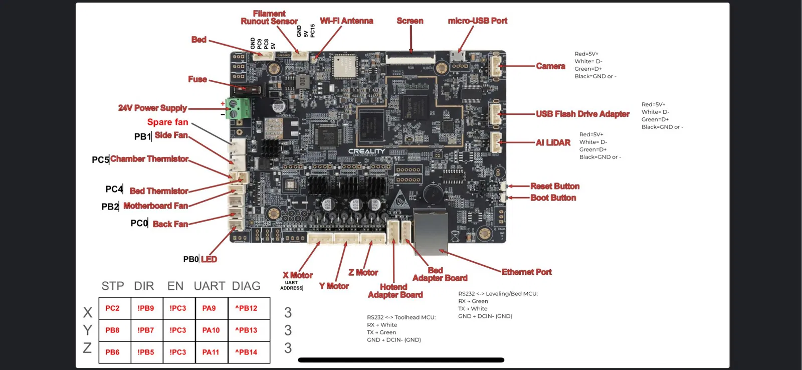 - Kết nối SFS với cáp đi kèm đến K1 Max. (cổng filament trên bo mạch chính gốc, hoặc đầu nối endstop (MIN) trên dòng BTT Manta).