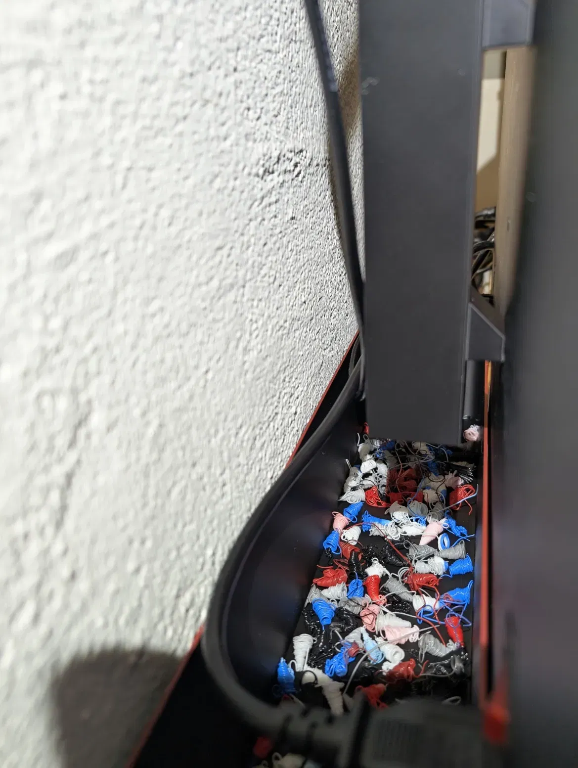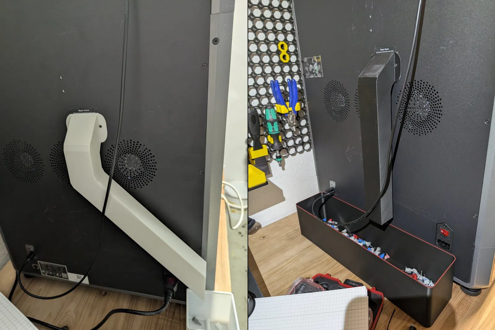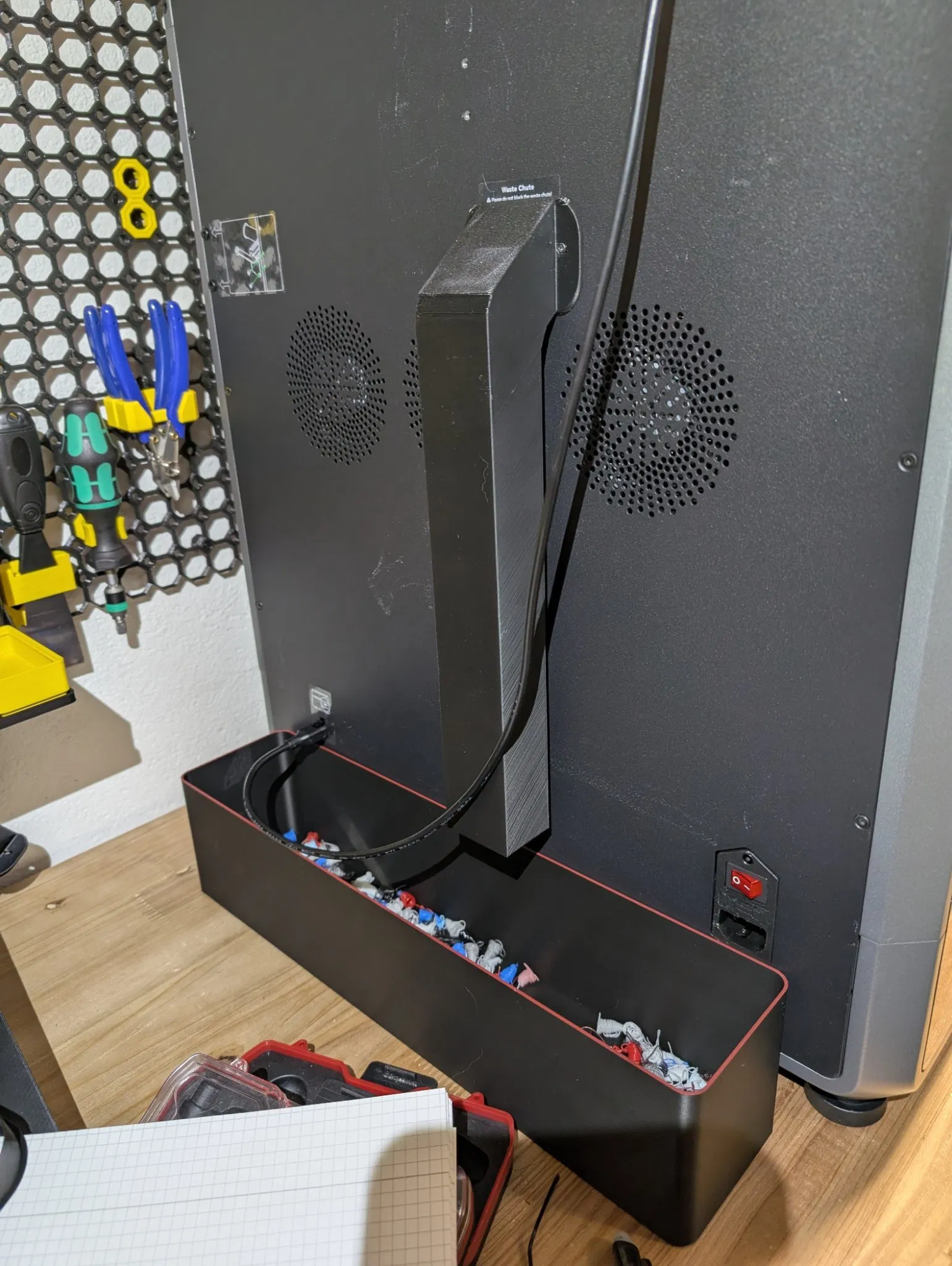 Một máng trượt phân cho Creality K2plus với nam châm tùy chọn. Hộp bao gồm, trượt dưới các dây nguồn.