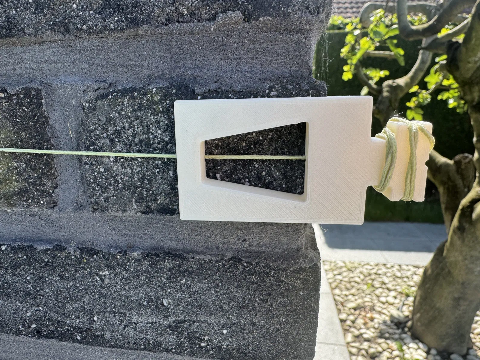 Một giá đỡ dây gạch đơn giản và thực tế, giữ cố định nhờ vào độ căng của chính dây gạch.