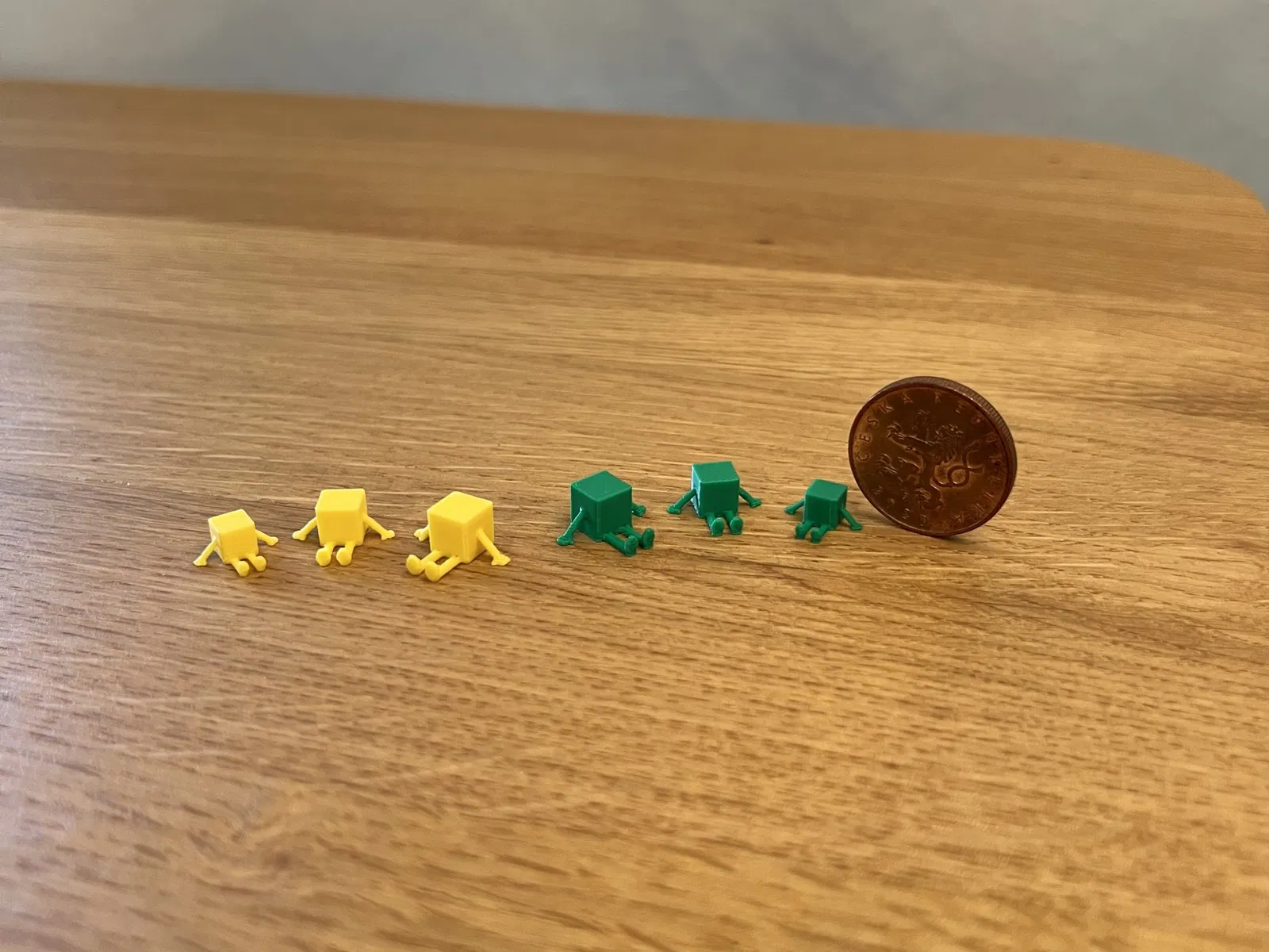Mini Cube Buddy – một người bạn nhỏ, siêu nhẹ được in 3D. Nặng chỉ 0.3g, in trong 3 phút, và mang lại sự vui vẻ cho bất kỳ bàn làm việc nào.