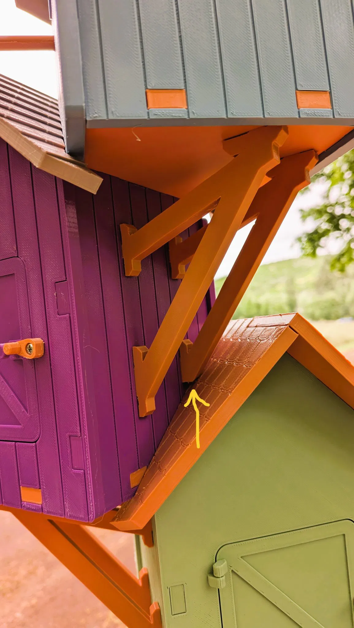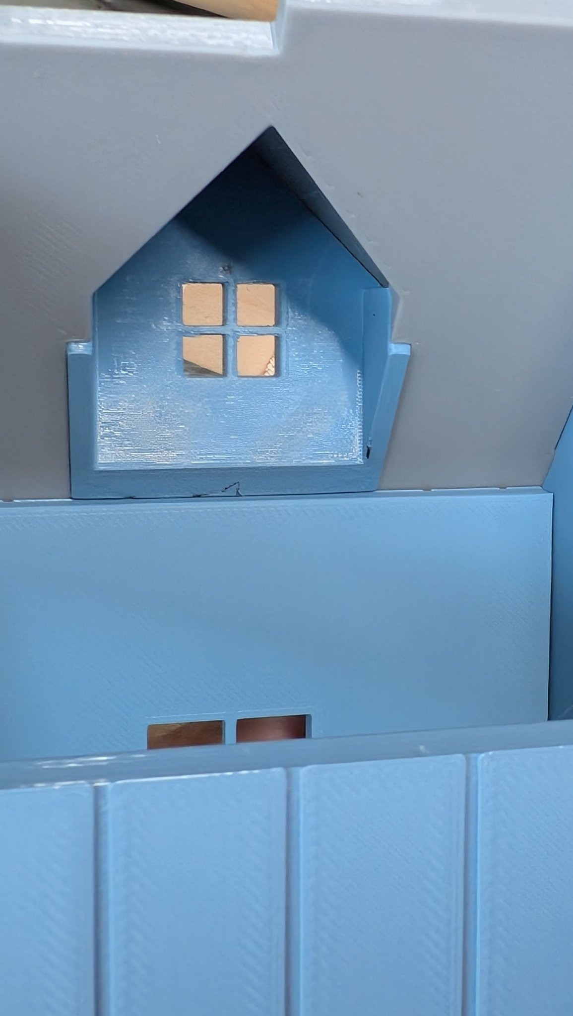 Cập nhật 16/6/25: Cải tiến thẩm mỹ mới! Dormer giờ đây sử dụng các miếng chèn để màu sắc có thể phù hợp với màu nhà. Các miếng chèn dormer trượt thẳng lên vào mái dormer và được giữ cố định bởi tường bên dưới (xem ảnh). Tôi cũng đã làm cho các mộng và mộng trở nên kín, vì vậy chúng không nhìn thấy từ bên ngoài để có vẻ ngoài sạch sẽ hơn. Tôi cũng đã làm tròn nhẹ góc của lỗ vào và thêm các cạnh nhỏ vào các cánh tay hỗ trợ. Xin cho tôi biết ý kiến của bạn!