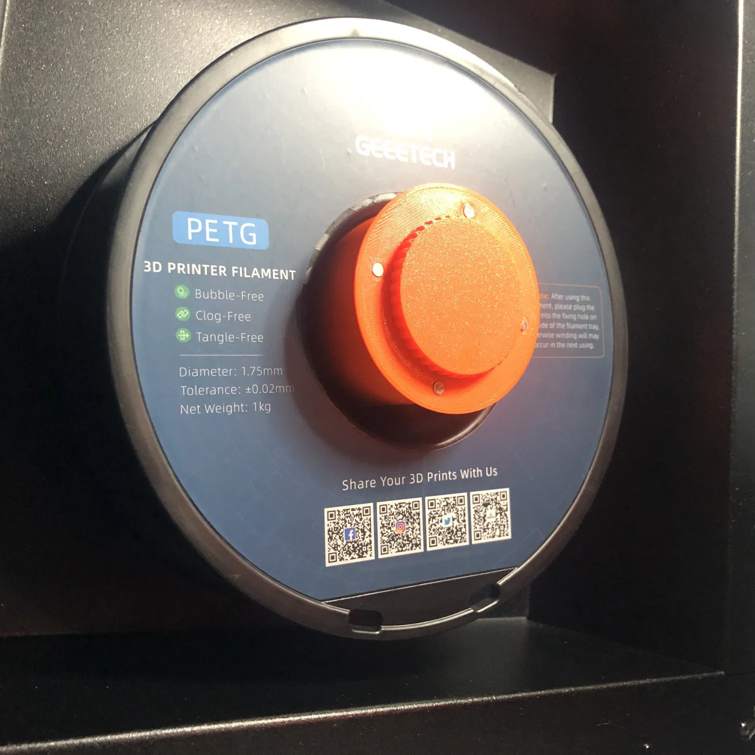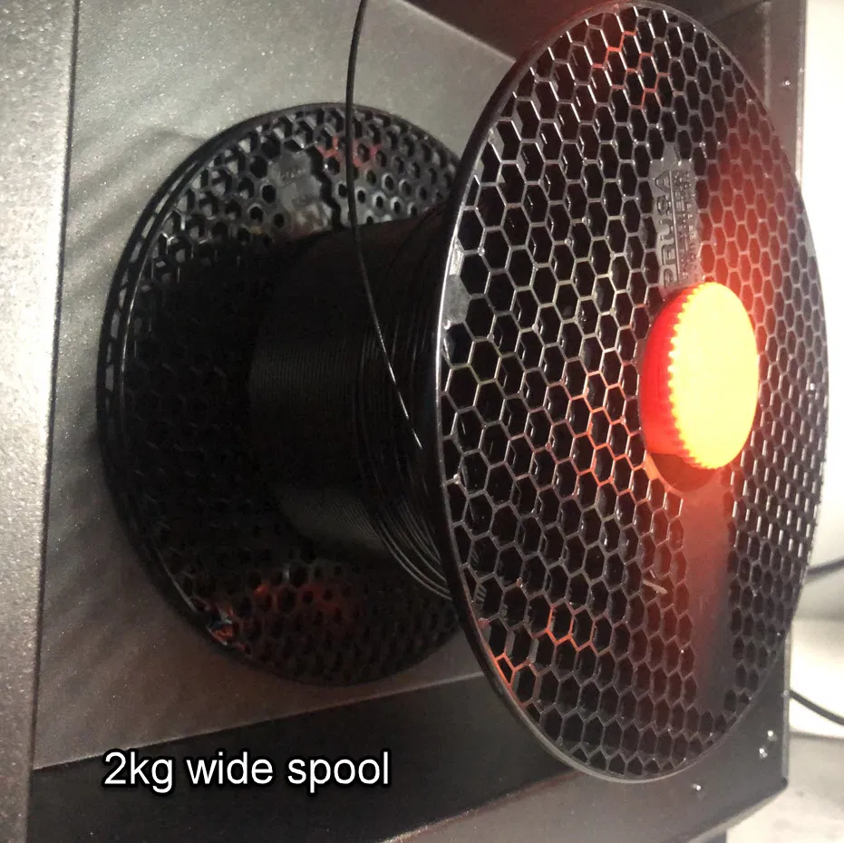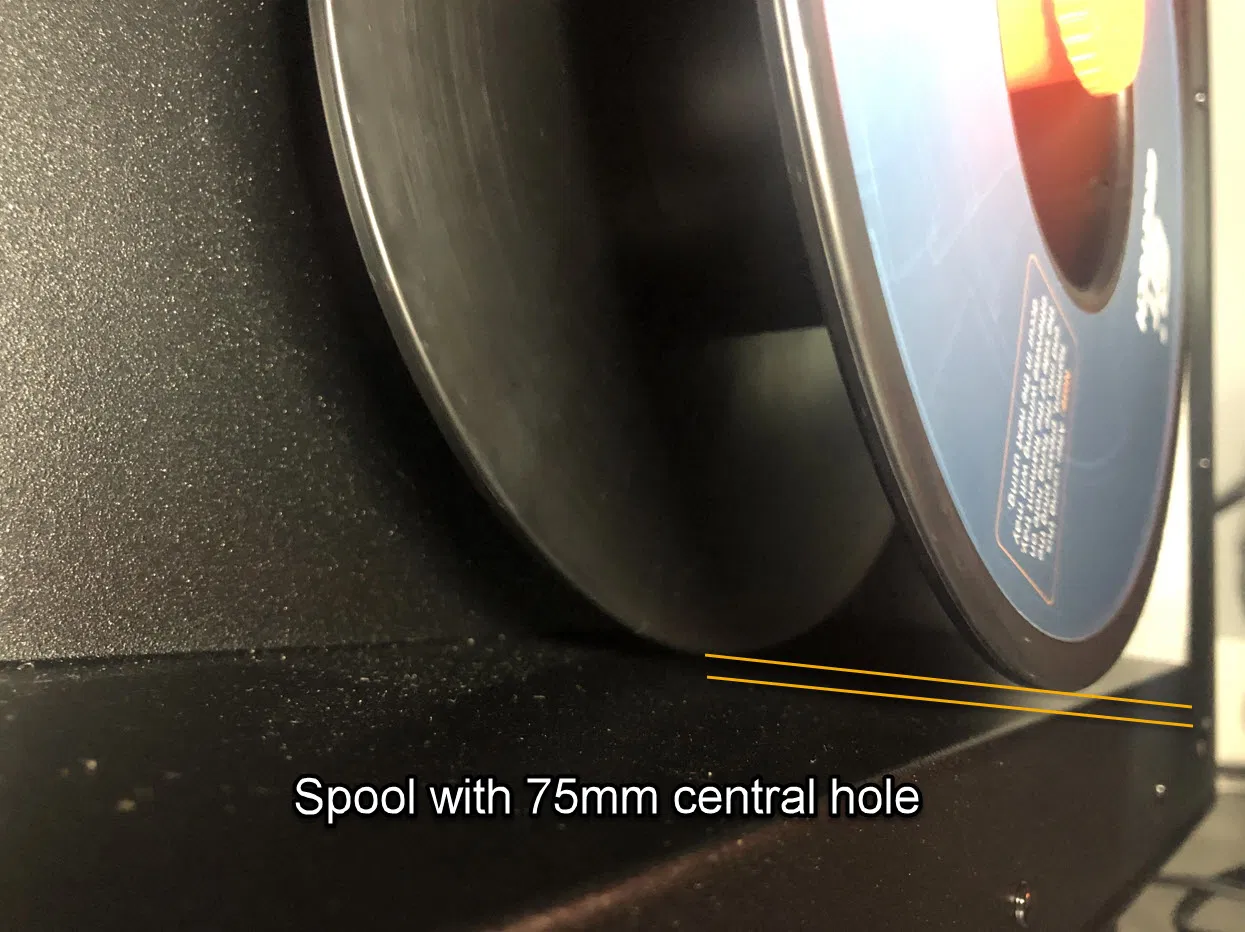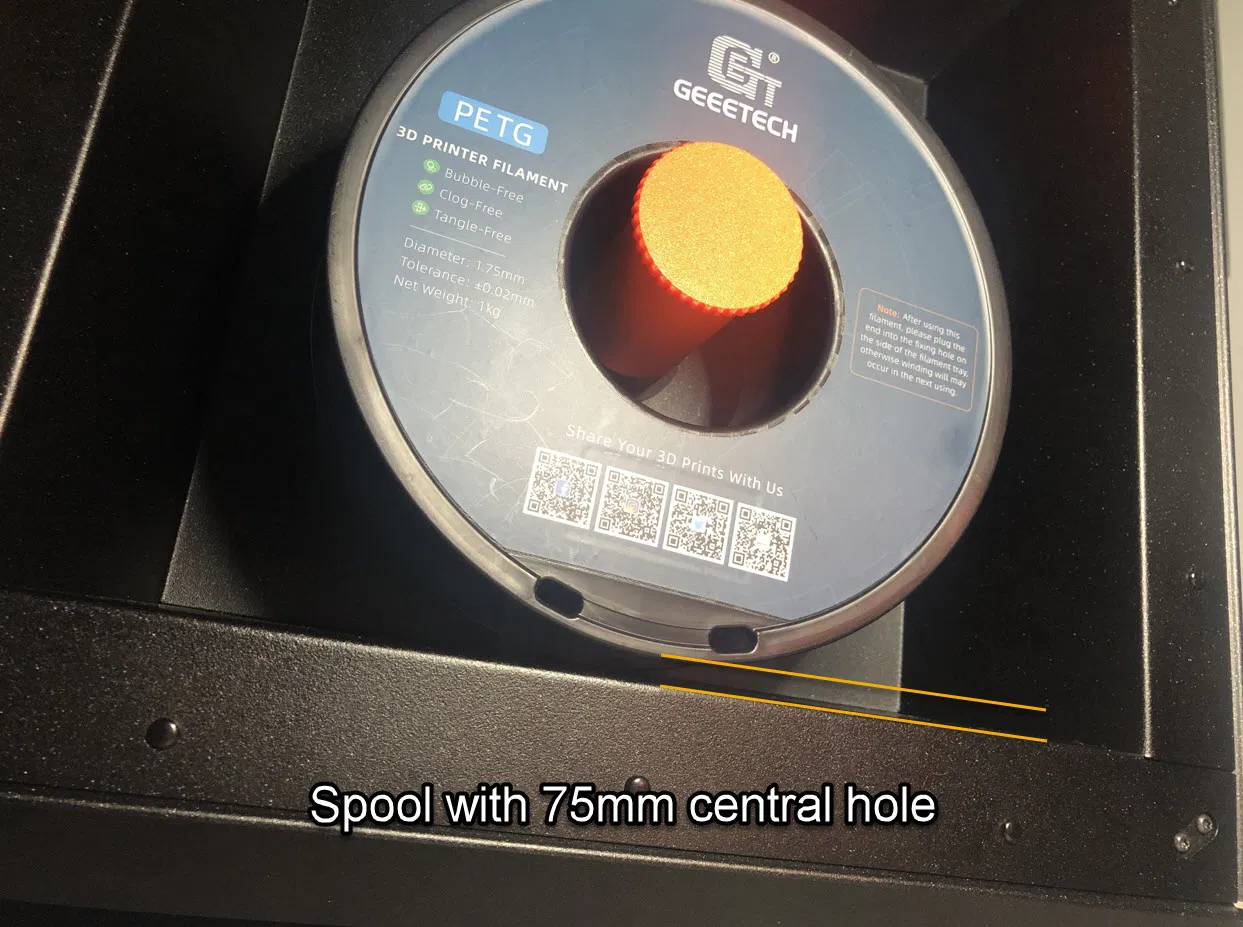 - Đường kính 42mm cho phép bạn sử dụng các cuộn sợi hẹp với lỗ trung tâm 75mm (Giantarm, Geeetech, ...) mà không bị chạm vào thành dưới của máy in.