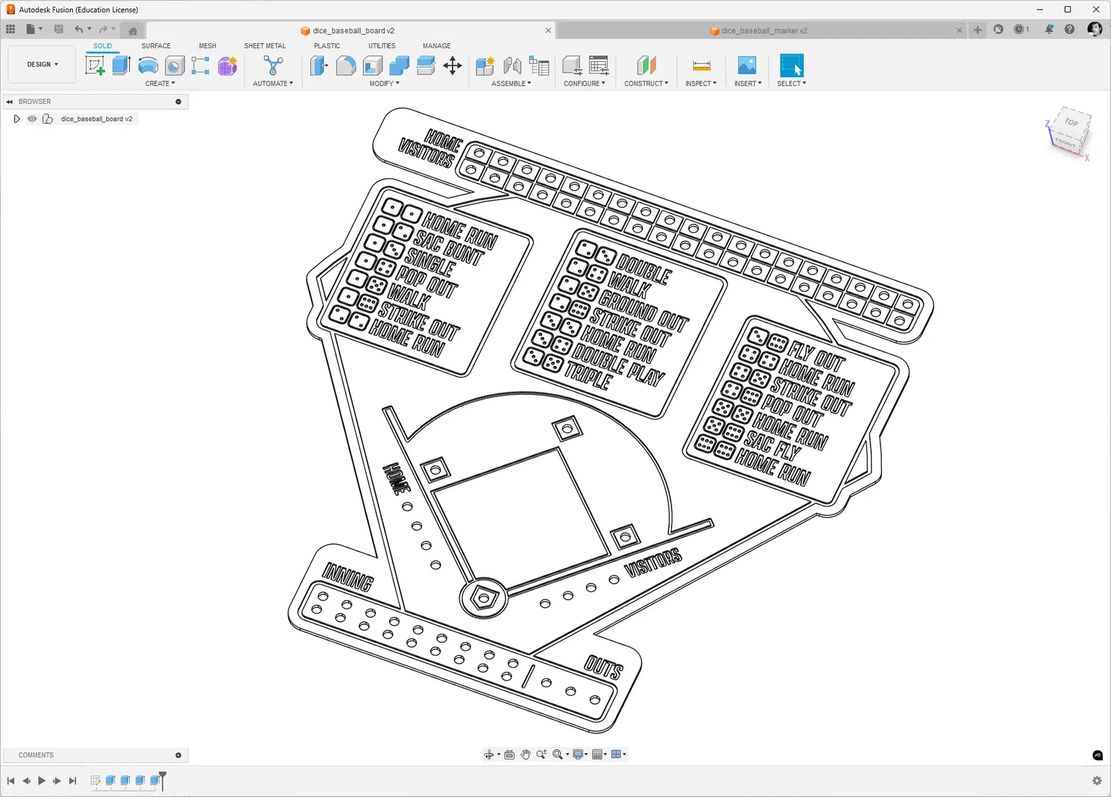 Mô hình trò chơi Dice Baseball được thiết kế từ đầu cho người dùng Reddit. Kích thước bảng khoảng 310×316×2 mm, phù hợp cho việc cắt bằng laser.