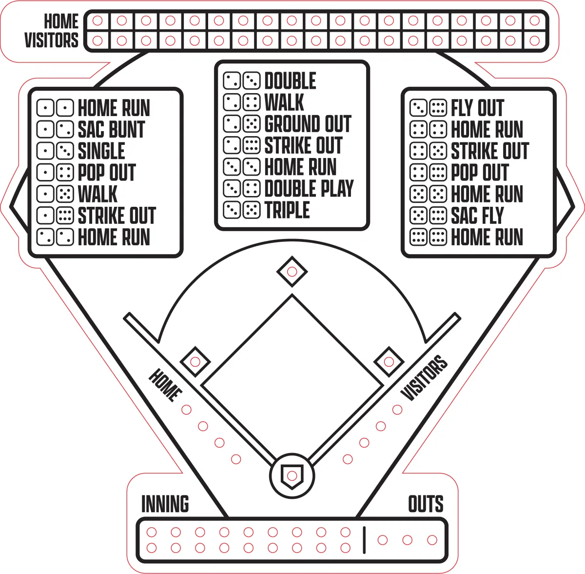 Bảng trò chơi bóng chày bằng xúc xắc tự chế