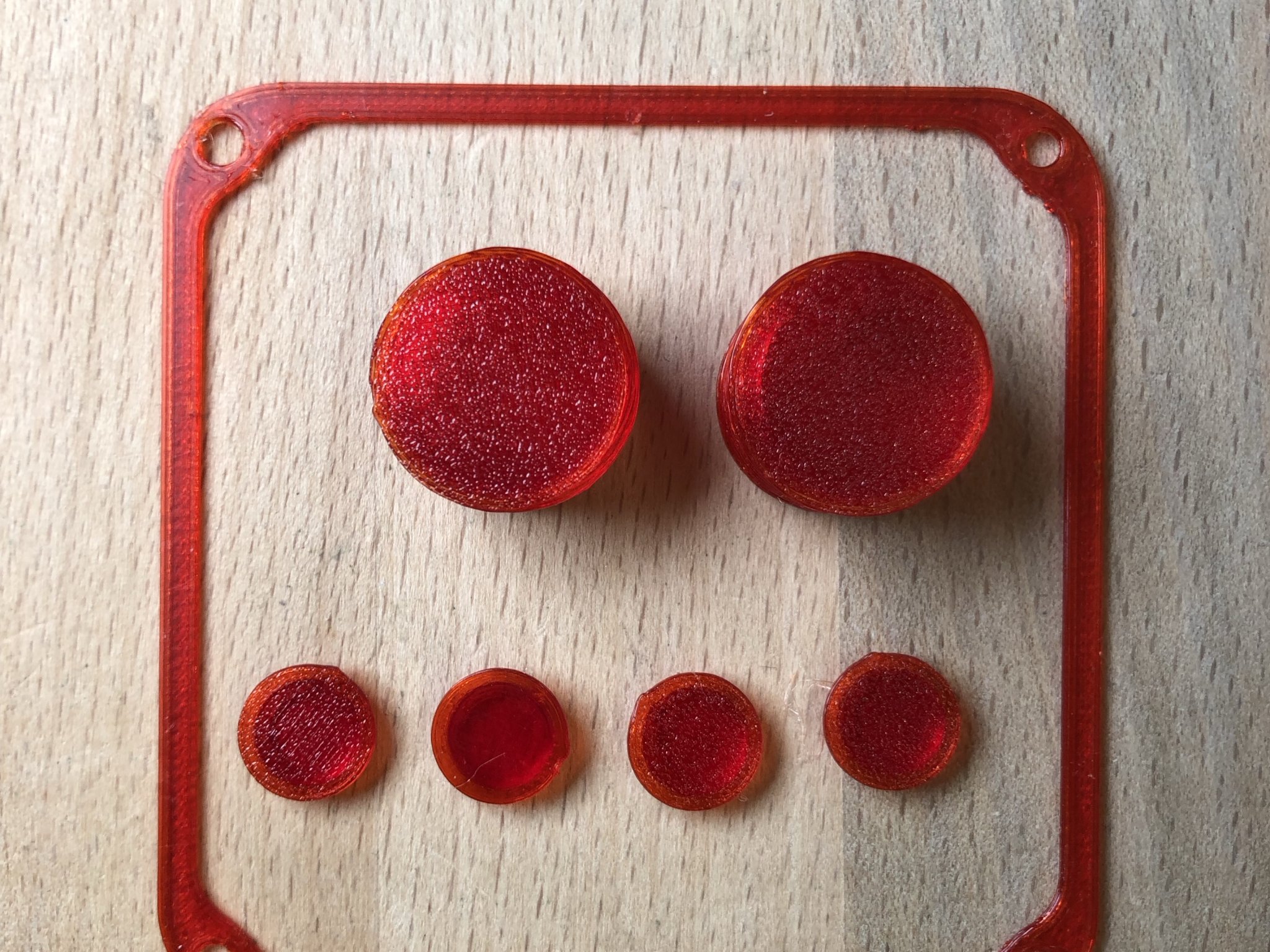 Một miếng đệm có thể in được chèn giữa nắp và vỏ. Tất cả các miếng đệm đều được in 3D bằng TPU và có độ linh hoạt (các bộ phận màu đỏ).