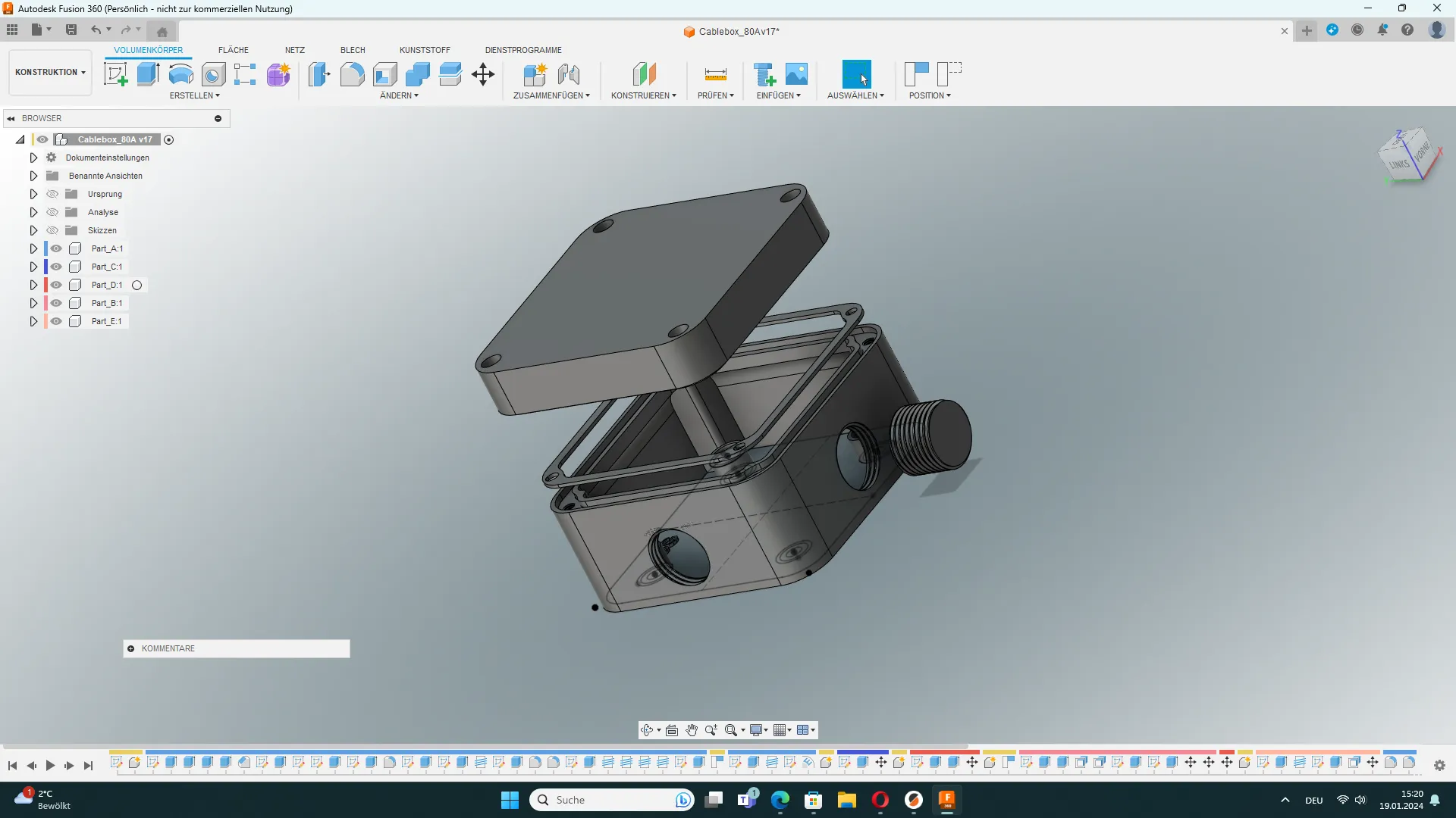 Vỏ và nắp được in bằng PETG. Nắp được cố định bằng 4 vít (4 mm).