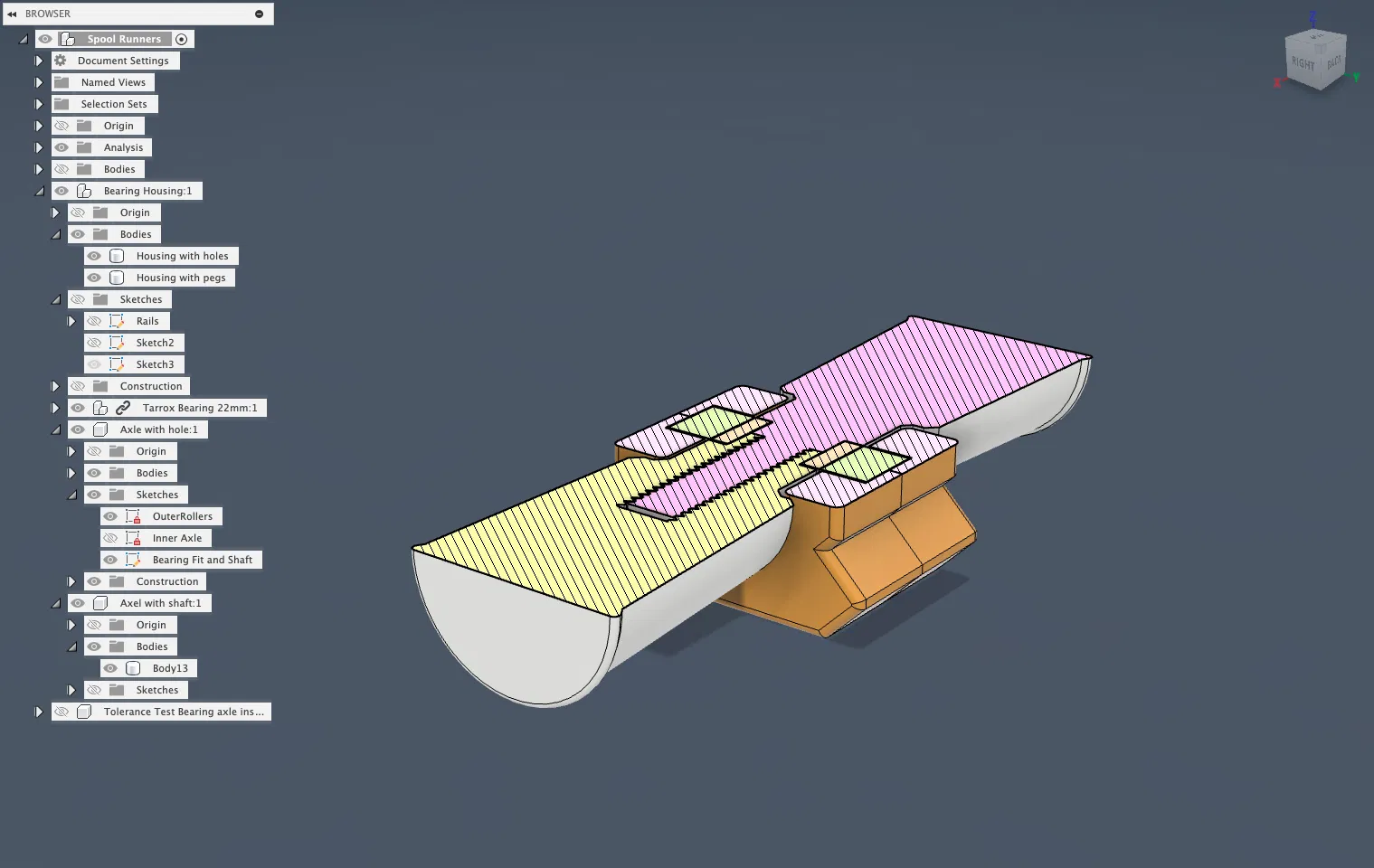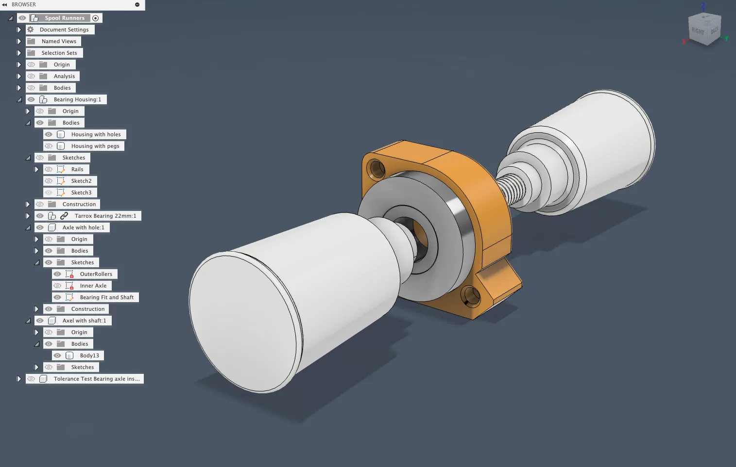 Thiết kế này có một chút khoảng trống, nhưng không nhiều (0.1mm), vì nó cần phải chặt. Nếu không chặt, đặc biệt là chỗ trục khớp với lỗ trung tâm của ổ bi, nó sẽ bị rung lắc. Vỏ ổ bi cũng phải chặt vì lý do tương tự.