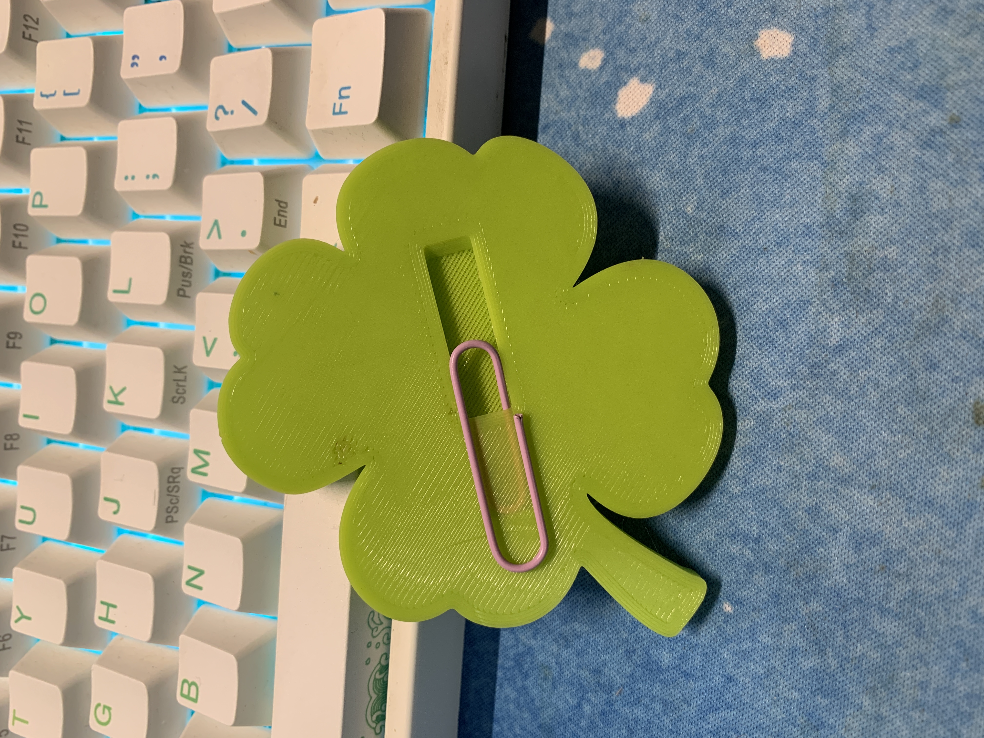 Tôi đã làm một chiếc ghim cài áo hình cỏ bốn lá nhỏ. Nó được thiết kế để nhét một chiếc kẹp giấy vào mặt sau như trong ảnh để gắn vào cổ áo sơ mi, mũ, thắt lưng, hoặc bất cứ thứ gì khác bạn muốn.