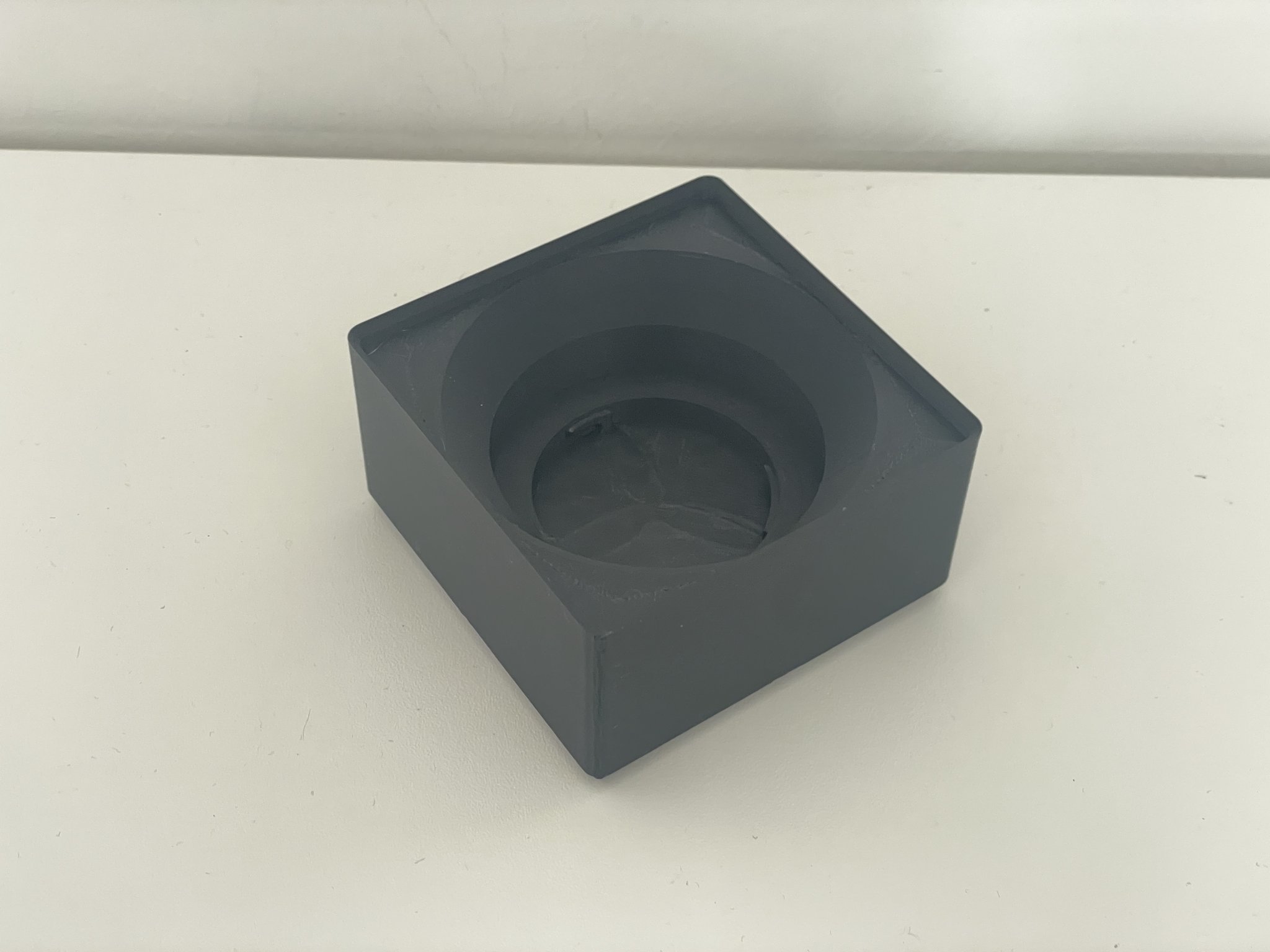 2x2 H6 thùng Gridfinity với một nắp ống kính Sony ở đáy. Nó hoạt động cả với nắp ống kính cũng như không có.