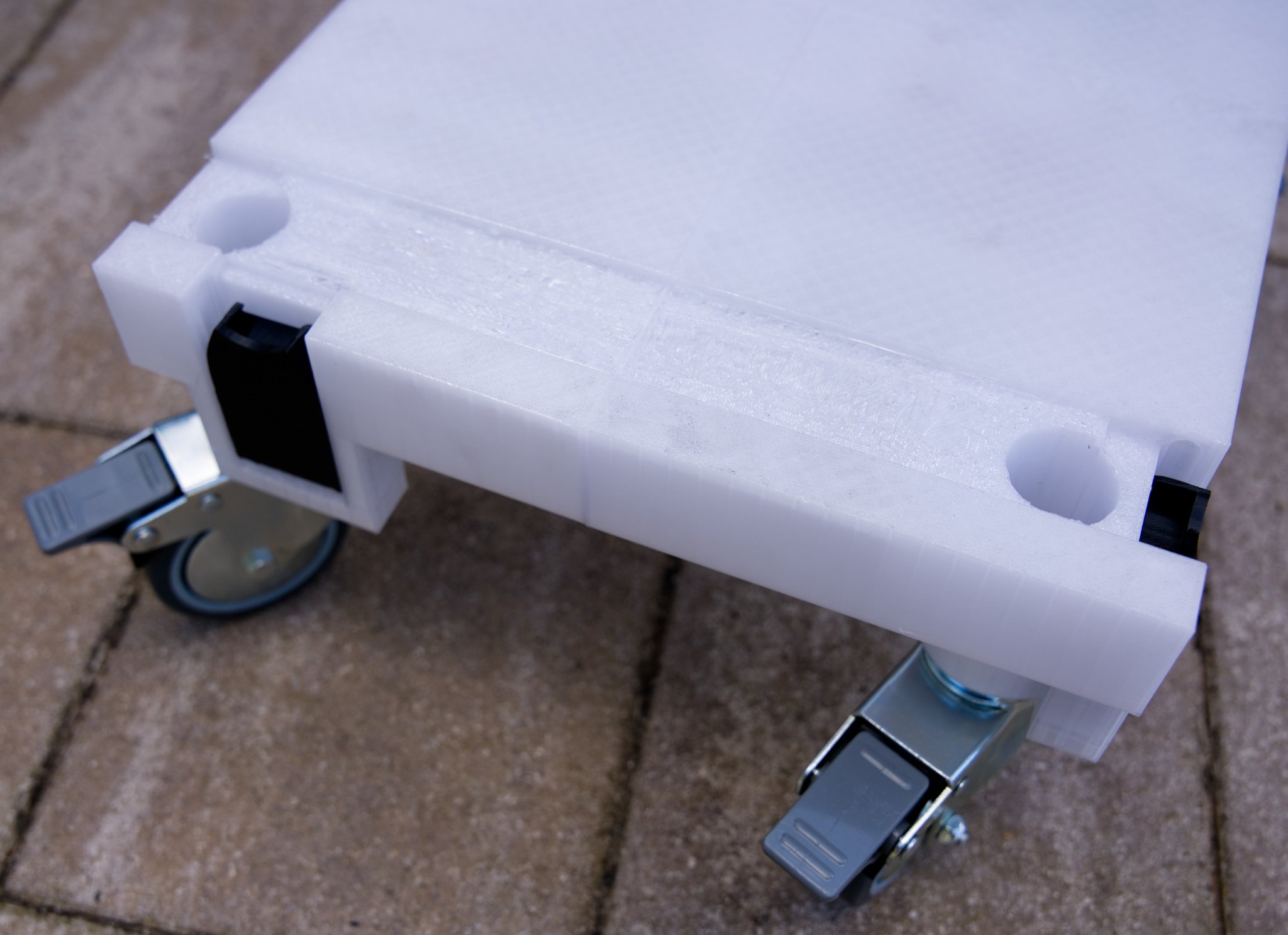 - (tùy chọn) bốn tấm đệm (để gắn bánh xe) Lắp ráp: không cần keo. Tất cả 4 mảnh chỉ cần được cắm lại với nhau (bằng mũi của mô hình) và sau đó (tối đa) mười hai M5x50mm ốc vít và đai ốc nên được chèn vào để đạt được độ ổn định cao và ngoài ra các ốc vít sẽ tự động căn chỉnh 4 mảnh để tạo ra một bề mặt phẳng hoàn hảo mà không cần điều chỉnh thủ công các mảnh in. Cuối cùng, bốn bánh xe 75mm được gắn vào mô hình bằng cách sử dụng bốn M10x40mm ốc vít và đai ốc (với một tấm đệm ở giữa được khuyến nghị nhưng không bắt buộc). Bạn có thể mua bánh xe tại các cửa hàng phần cứng với giá 5 đô la mỗi cái. Trong bức ảnh đầu tiên, toa xe có bánh xe đơn giản mà không có cơ chế dừng. Tôi khuyên bạn nên mua bánh xe có dừng thay vào đó (thêm 2 đô la mỗi bánh), như được hiển thị trong các bức ảnh khác, để bạn có thể an toàn đậu toa xe ở những vị trí không bằng phẳng. Điều đó thật đáng giá! Ghi chú: hai bộ phận phía sau sẽ hiện cảnh báo “không đa diện” khi nhập chúng vào máy cắt. Tôi không bận tâm sửa chữa vấn đề này trong mô hình vì đối với máy cắt của tôi, nó không tạo ra vấn đề gì cả.