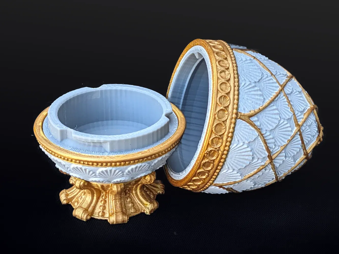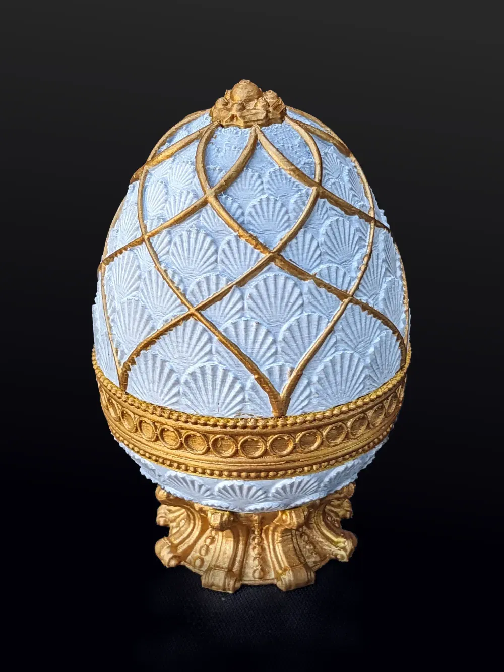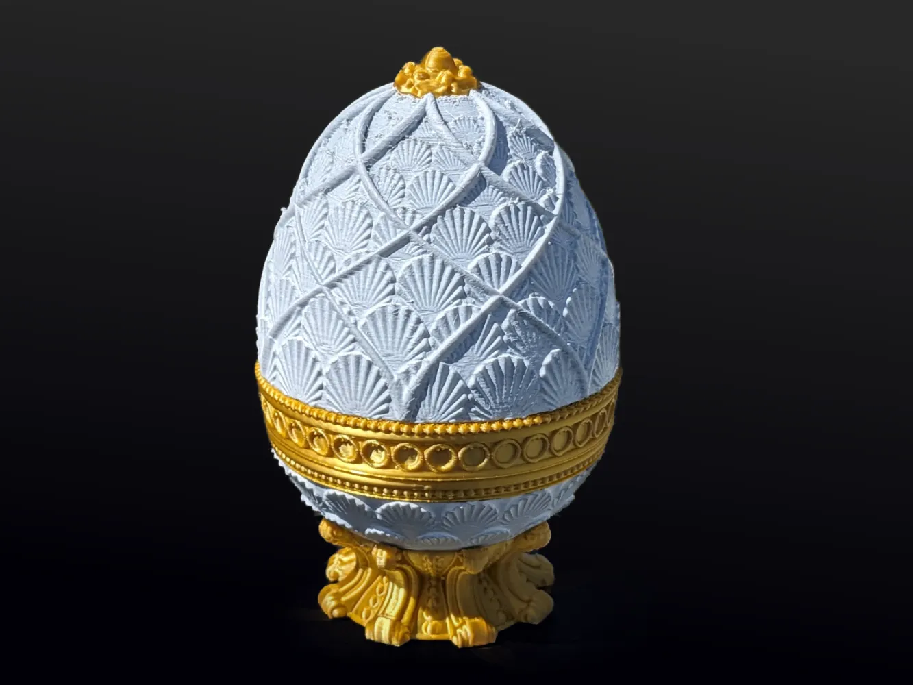Quả trứng cuối cùng được lấy cảm hứng từ những quả trứng Fabergé của Nga, cái này dành cho những người không cần thêm một câu đố nào nữa và chỉ muốn một cái hộp trứng đẹp. Hơn nữa, nó có nhiều không gian bên trong hơn.