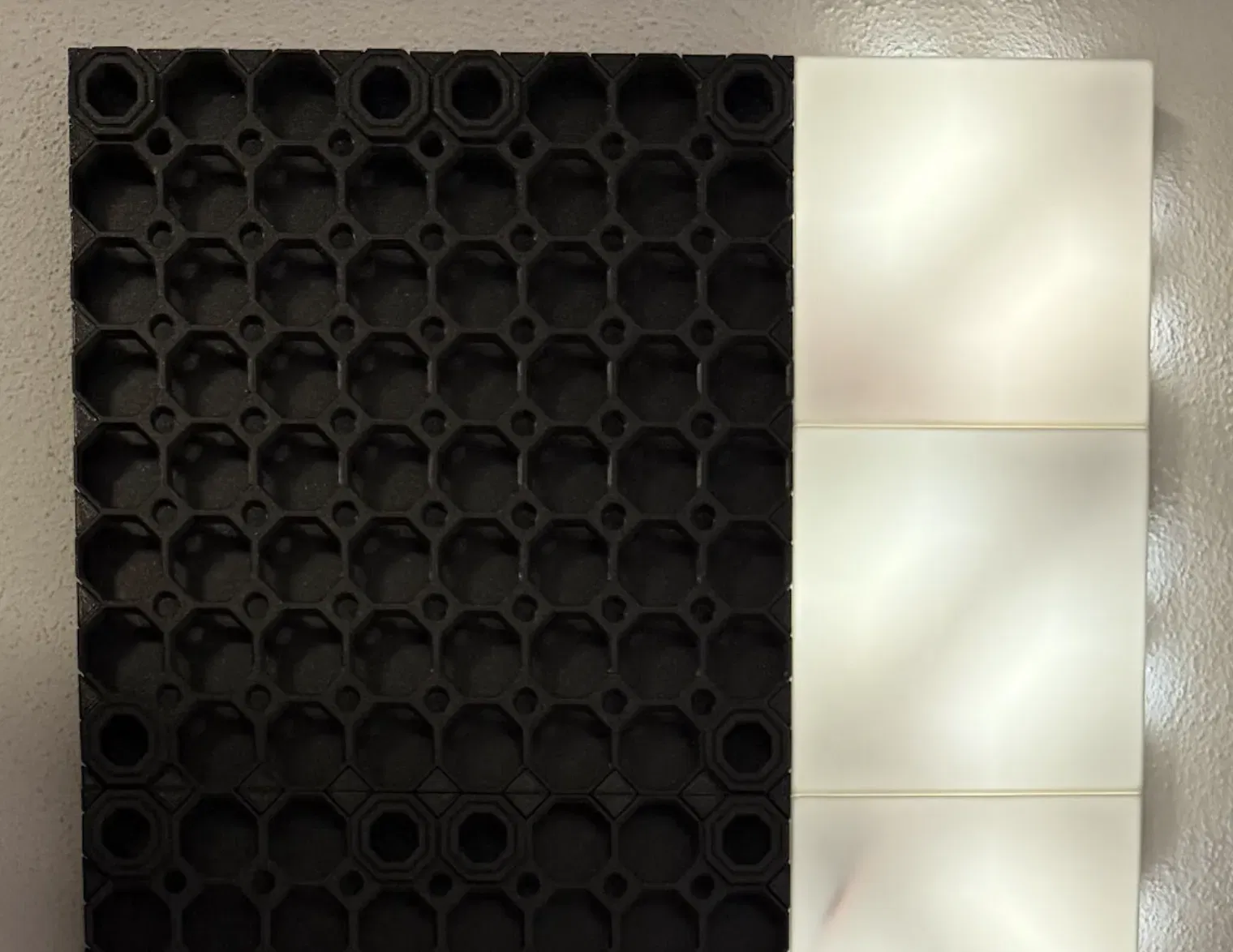 - Một Wonderwall Mount Panel In với 3 đường viền và ít nhất 20% độ đầy. #### Lắp ráp Vít tấm bạn đã in vào tấm Wonderwall Mount bằng 4/6 ốc vít che mặt sau Wonderwall Multiconnect. Tôi khuyên bạn nên sử dụng các phiên bản gập cho ít nhất các góc trên. Khi tấm mặt sau được gắn, trượt các kết nối Snap Part A (được cung cấp ở đây) qua các kết nối multiconnect. Chúng chỉ cần khớp vào vị trí. Đảm bảo chúng được xoay theo cách mà gạch multiboard có thể được gắn. Sau đó, gắn gạch multiboard. Có thể hơi khó khăn một chút để đặt chúng vào, nhưng bạn sẽ quen với điều đó. Cuối cùng, sử dụng Snap Part B của multiboard để giữ bảng ở vị trí.