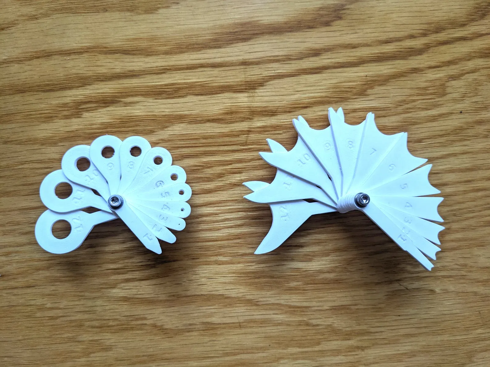 Một bộ thước đo độ dày để đo bán kính bên trong hoặc bên ngoài của các bộ phận.