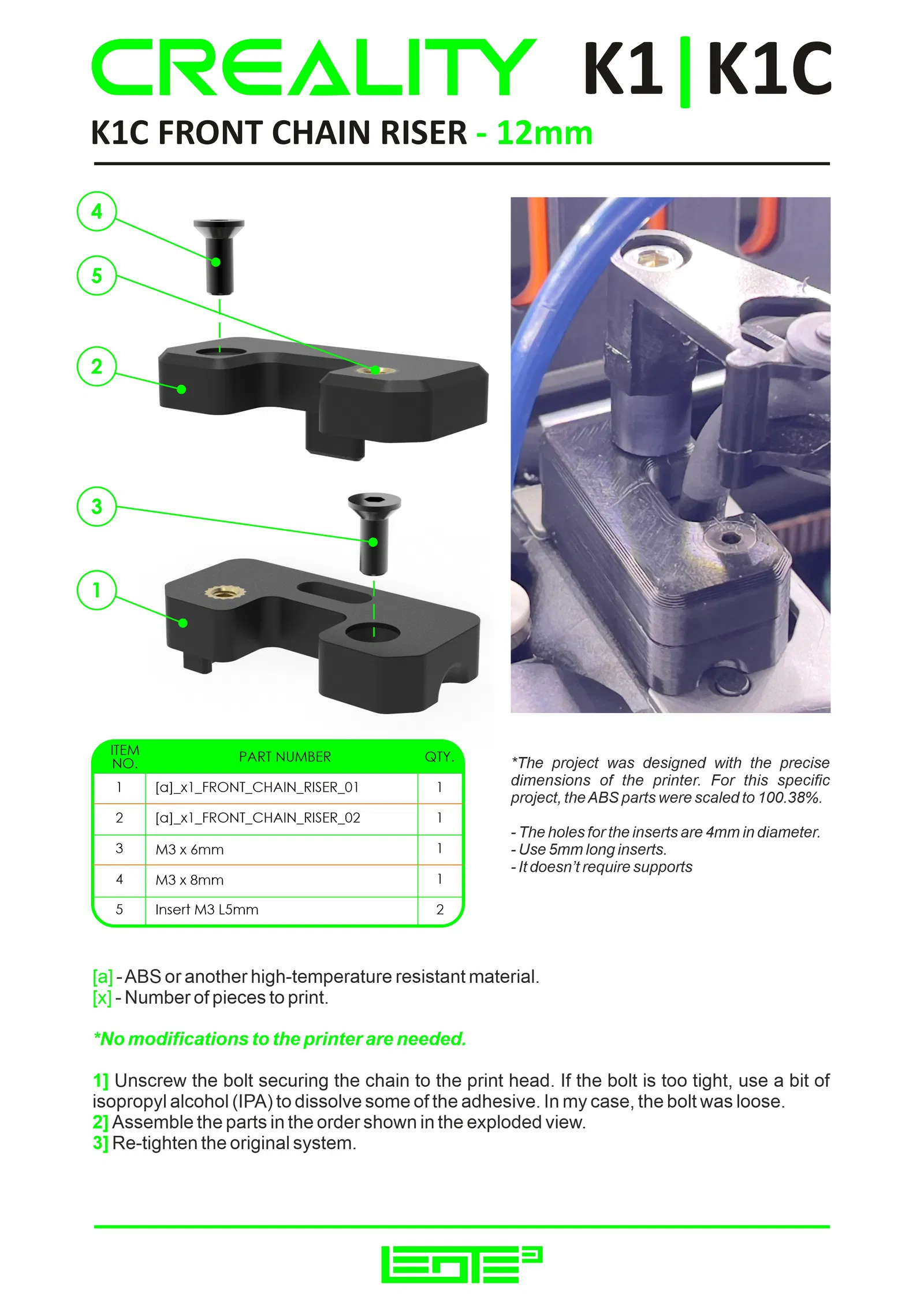 Bộ nâng xích CREALITY K1 | K1C | K1SE này nâng bộ phận xích lên 12mm mà không cần thay đổi vị trí bu lông. Tìm liên kết phần cứng được sử dụng trong dự án này và các dự án khác tại đây. Tham gia cộng đồng của chúng tôi để cập nhật!