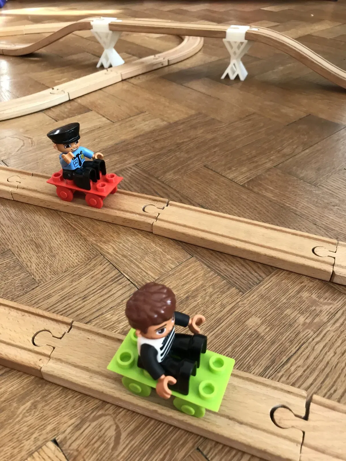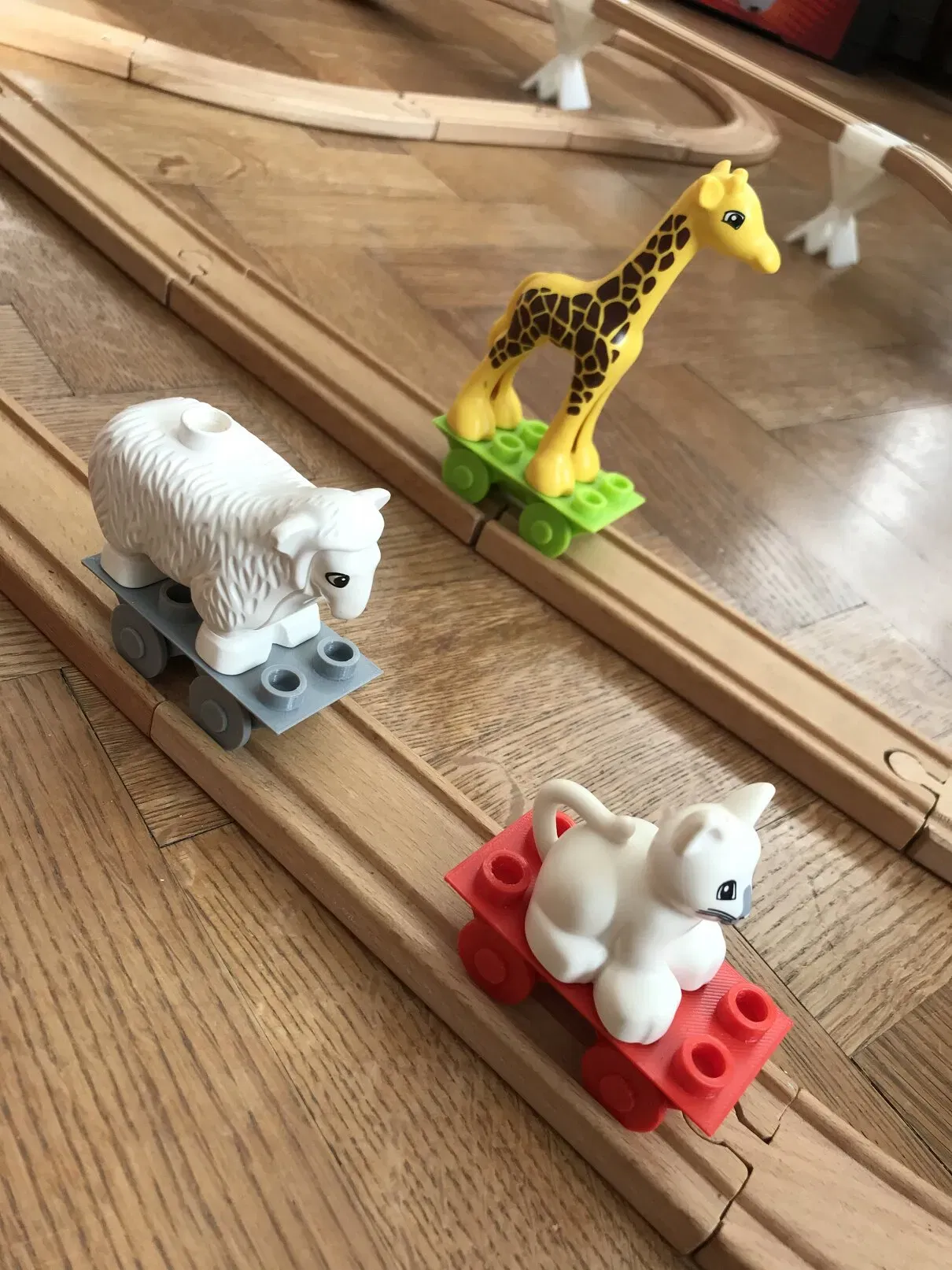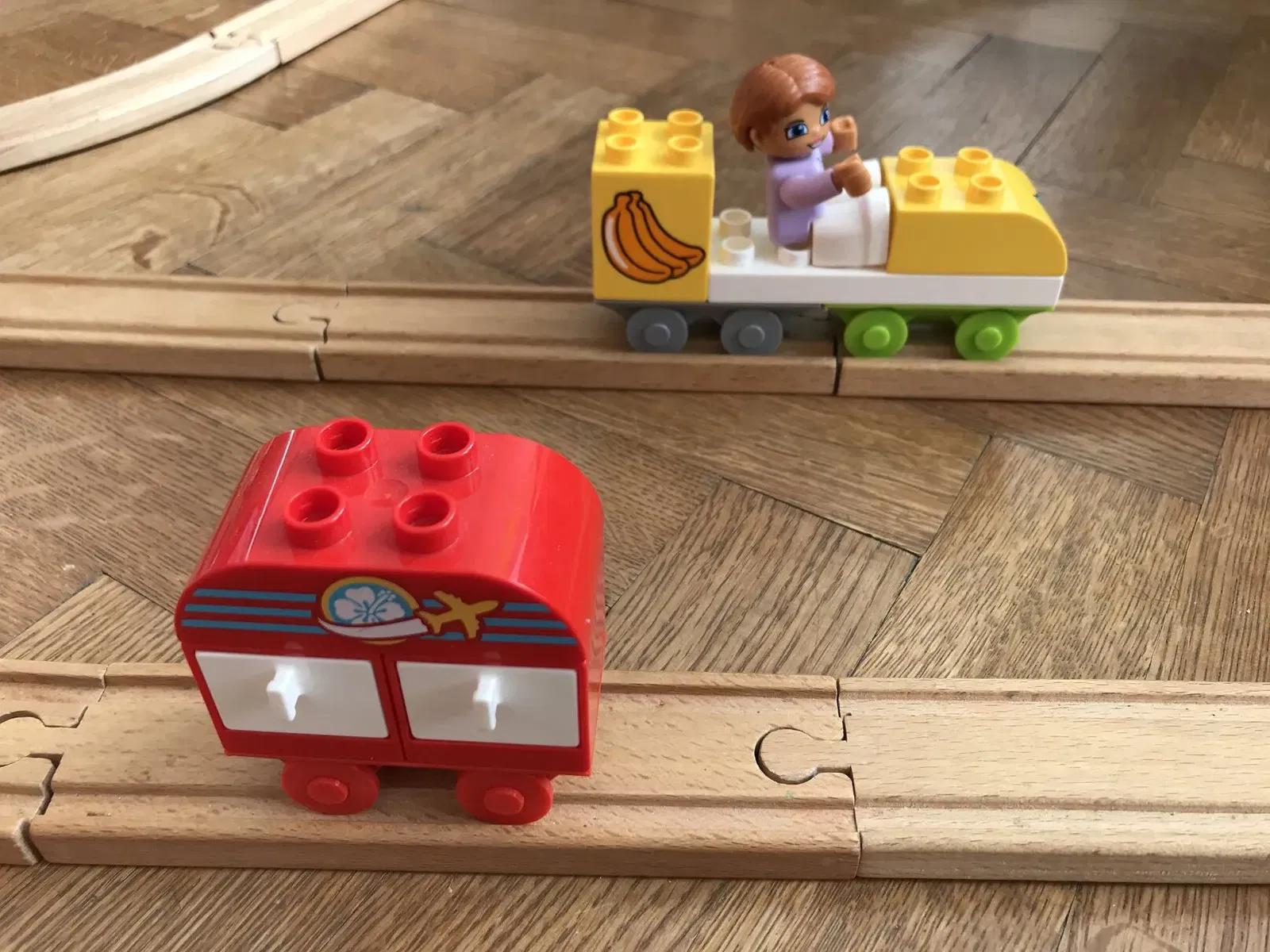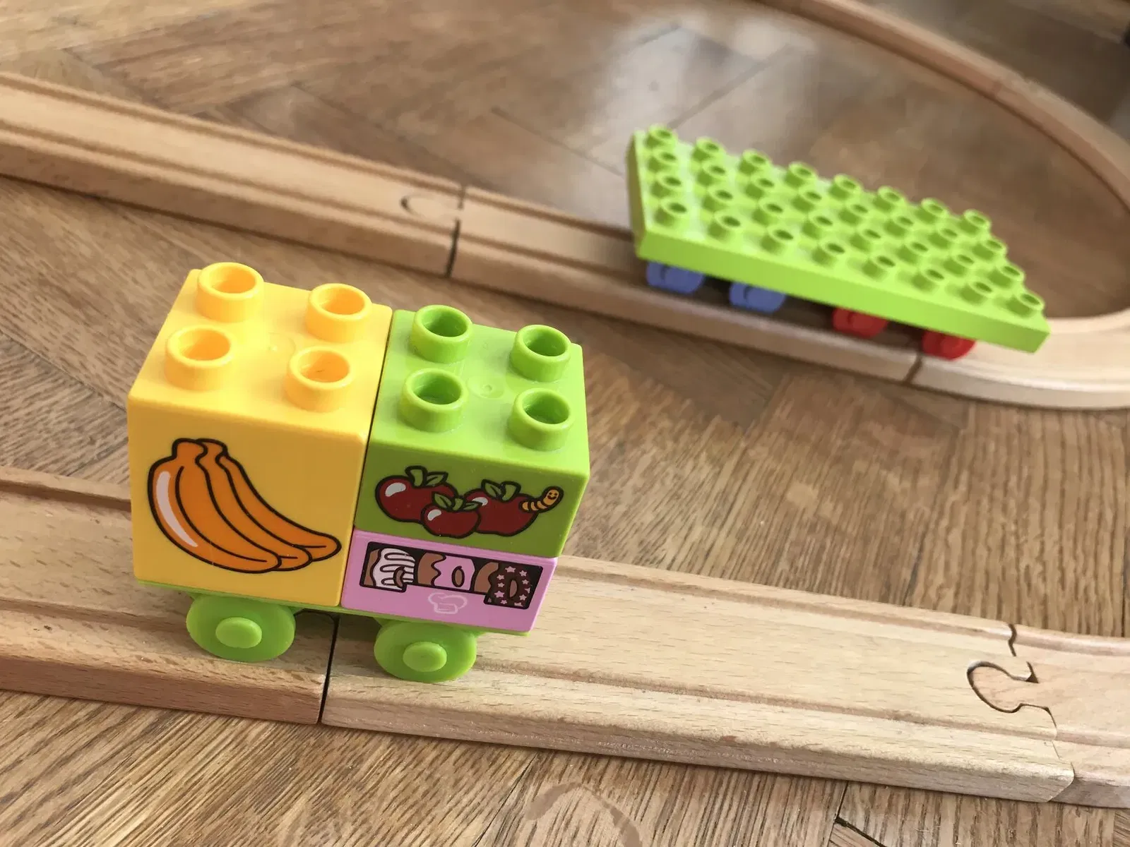 Wagon xe lửa tương thích với các viên gạch Lego Duplo và có thể chạy trên tất cả các đường ray gỗ cơ bản.