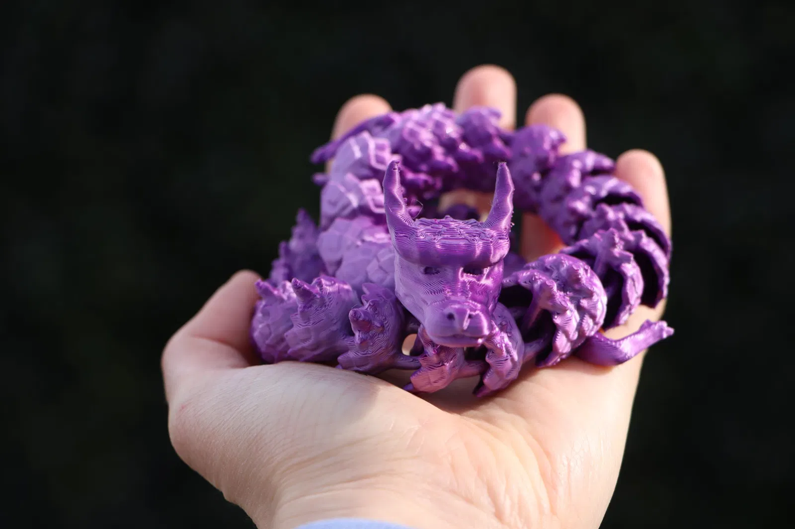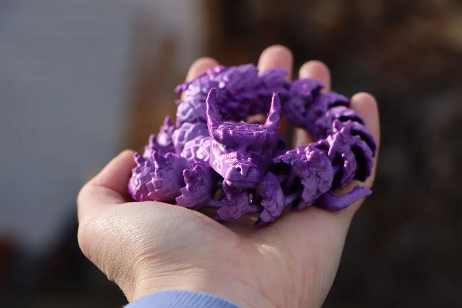 Chào mọi người. Tên tôi là P1lotz và tôi là một nghệ sĩ 3D chuyên nghiệp. Tôi đã làm việc trong lĩnh vực này từ năm 2019 và chuyên tạo ra những sinh vật có khớp, đặc biệt là rồng. Lần này cũng không phải là ngoại lệ. Tác phẩm mới nhất của tôi là một con rồng có khớp linh hoạt với các khớp di chuyển mượt mà, khiến cho con rồng trở nên thú vị khi chơi. Không chỉ các khớp được khớp hóa, mà chân, đầu và đuôi của nó cũng di chuyển tự do. Mô hình này đã được in bằng filament màu morph từ FormFutura. FormFutura là một nhà cung cấp đáng tin cậy của các loại filament chất lượng cao với nhiều màu sắc khác nhau, giúp việc in ấn trở nên dễ dàng và hoàn hảo. Kết quả của sự kết hợp giữa các màu sắc thật tuyệt vời. Tôi rất thích nó!