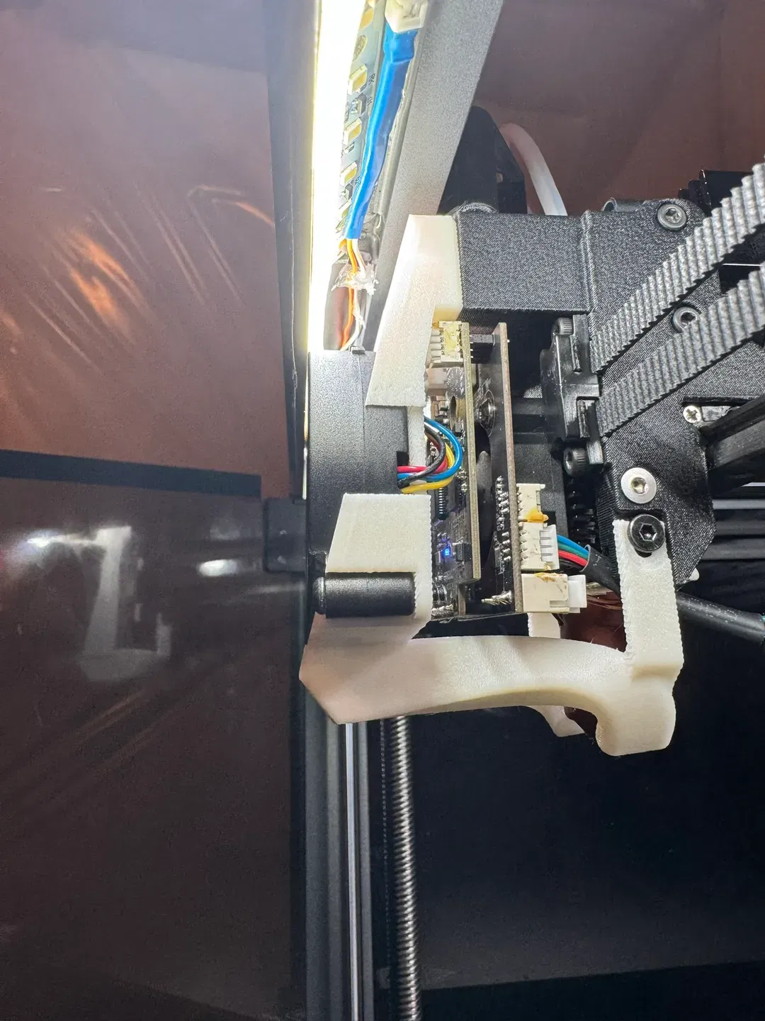 Vì kích thước của quạt 5015, thật khó để lắp đặt mà không giới hạn hành trình của đầu in. Bộ làm mát này vừa vặn với một sửa đổi nhỏ: BẠN PHẢI LOẠI BỎ MẢNG KẾT NỐI CANBUS TỪ BẢNG MẠCH. Rủi ro ở đây là bạn có thể cài đặt kết nối cáp không đúng cách và làm hỏng máy in của bạn. Xem hình ảnh để biết chi tiết. Sử dụng điều này với rủi ro của riêng bạn.