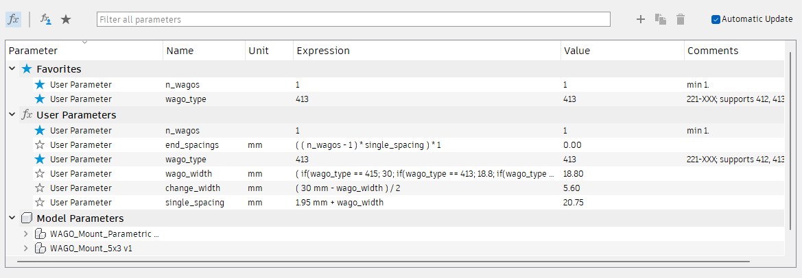 Tệp gốc được lấy từ CAD của Annex K3 chuyển đổi sang F3D nhưng tôi đã liên kết STL để đơn giản hơn. Điều này hỗ trợ 221-412, 221-413 và 221-415. Bạn có thể chọn bất kỳ số lượng kết nối WAGO nào cho mỗi giá đỡ.