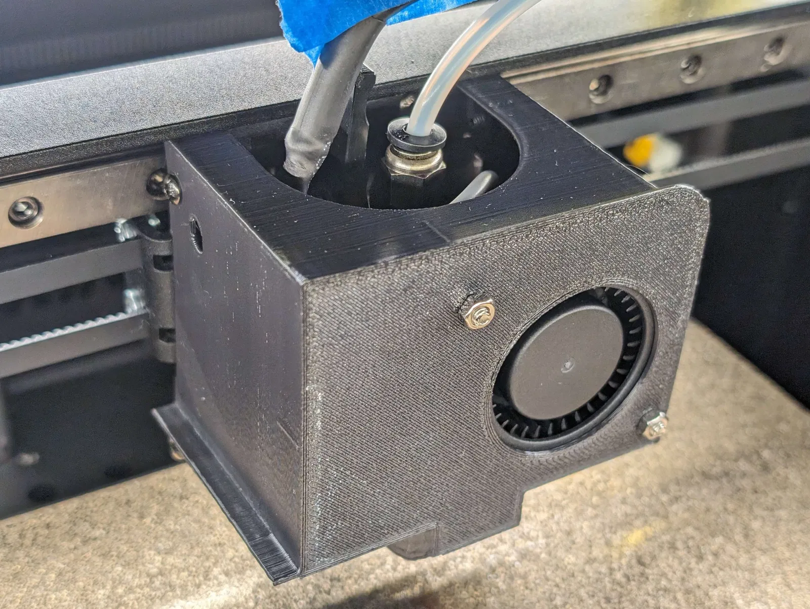 Cập nhật 2023-12-05: hiện đã có các khe dọc cho các lỗ vít bên trái để điều chỉnh vị trí một chút, nhiều khoảng trống hơn cho quạt, và một lỗ để dây quạt đi qua.