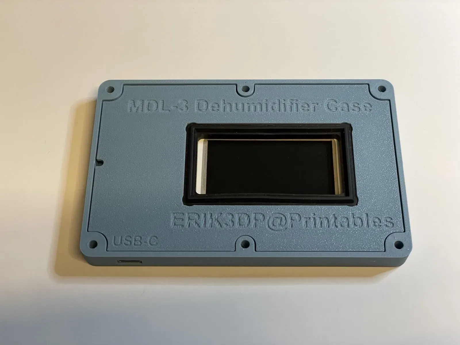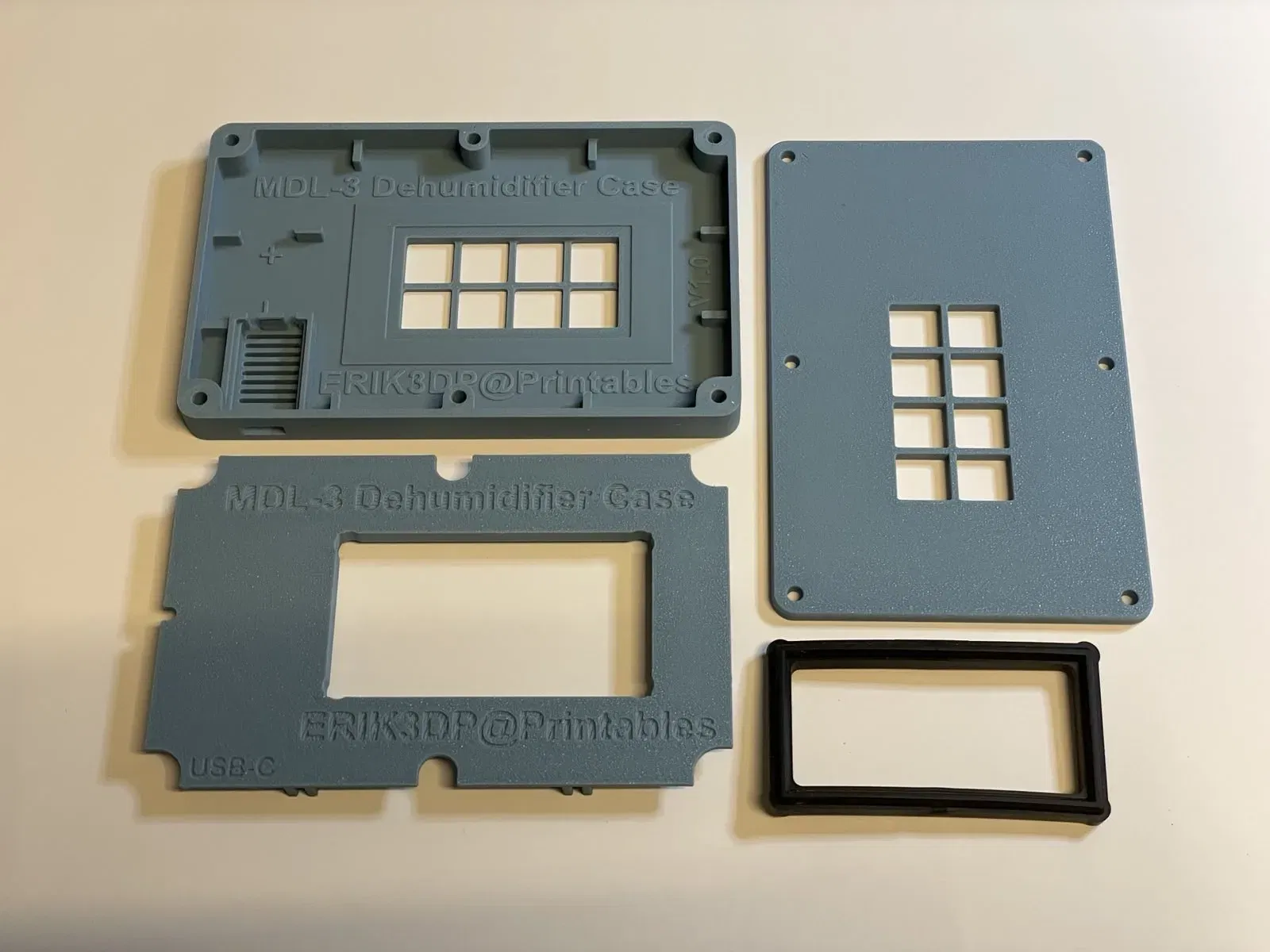 Đây là vỏ/bìa lắp đặt mới cho màng dehumidifer điện Rosahl MDL-3 như một lựa chọn thay thế cho bản gốc () và sử dụng một gioăng cao su có sẵn so với vòng O của bản gốc. Nó có thể được sử dụng cho một hộp khô filament khoảng 50-80l cho nhiều cuộn hoặc có thể được lắp vào Bambu Lab AMS hoặc các hệ thống vật liệu đa dạng khác. Cùng với một mô-đun nguồn cung cấp USB-C, đây là một giải pháp lưu trữ khô tiện lợi và tiêu thụ điện năng thấp. ### Nguyên tắc hoạt động Các máy hút ẩm Rosahl dựa trên một màng polymer trạng thái rắn. Khi được cung cấp điện áp DC 3V, độ ẩm ở một bên bị phân hủy thành các ion Hydro và Oxy, các ion Hydro đi qua màng và kết hợp lại với Oxy trong không khí để tạo ra độ ẩm một lần nữa ở phía bên kia và được thải ra. Các máy hút ẩm Rosahl có kích thước nhỏ gọn, hoạt động hoàn toàn không cần bảo trì và mức tiêu thụ điện năng rất thấp. Màng Rosahl MDL-3 phù hợp để lưu trữ nhiều cuộn filament trong một hộp lưu trữ lớn khoảng 50-80l hoặc Bambu Lab AMS hoặc các hệ thống vật liệu đa dạng khác. Với các cuộn filament đã được làm khô trước (đặc biệt là các cuộn làm từ bìa có độ ẩm khá cao), việc lưu trữ liên tục ở khoảng 15% độ ẩm tương đối và thấp hơn là khả thi. #### Bambu Lab AMS/Hệ thống Vật liệu Đa dạng Tôi nhận thấy rằng Bambu Lab AMS không được niêm phong tốt như nhà sản xuất đã tuyên bố. So với một hộp lưu trữ 50l có gioăng, nơi tôi đạt được độ ẩm cuối cùng <10% bên trong, AMS có thể giảm xuống khoảng 14%, điều này vẫn được coi là mức độ ẩm hợp lý, xem hình ảnh của một phép đo thực tế. Bambu Lab AMS đặt trên đỉnh máy in P1P/P1S/X1C được làm nóng một chút trong quá trình in và do đó giảm thêm độ ẩm tương đối bên trong AMS và làm cho MDL-3 hiệu quả hơn nữa! ### In ấn Tất cả các bộ phận có thể được in mà không cần hỗ trợ. Tôi đã in bằng Overture PLA Professional trên một chiếc Bambu Lab P1S. Một tệp .3mf có sẵn cùng với các mô hình STL. Bảng lưng có một vát nhỏ ở một bên, vì vậy tốt nhất là đặt bên đó xuống mặt in, đặc biệt khi sử dụng một mặt phẳng có kết cấu. ### Lắp ráp/Gắn kết Mặt che gắn kết được làm từ một khung trước cho MDL-3 và một mô-đun nguồn USB-C. Việc niêm phong chống lại bên trong hộp được thực hiện bằng một gioăng cao su hình chữ nhật (liên kết bên dưới), do đó không cần phải in một gioăng bằng filament dẻo. Một bảng lưng có thể được gắn vào bên trong để đảm bảo gioăng khít chặt trong trường hợp vật liệu tường hộp là dẻo, điều này thường xảy ra với hầu hết các hộp lưu trữ. Nếu sử dụng trên ví dụ như Bambu Lab AMS thì có thể không cần thiết. *Lưu ý:* Thông thường, việc gắn màng càng cao càng tốt vào vỏ/hộp vì không khí khô có trọng lượng riêng hơi cao hơn không khí ẩm và do đó sẽ chìm xuống trong vỏ. Bước đầu tiên nên sử dụng mặt che trước lộn ngược trên vị trí gắn kết mong muốn và đánh dấu sáu lỗ vít và phần cắt của khu vực màng MDL-3 lên tường hộp. Khoan các lỗ gắn kết bằng mũi khoan gỗ 3.5mm (vì chúng có một chỗ lõm ở giữa và sẽ không bị lệch trong quá trình khoan). Phần cắt cho màng có thể được “dremel” vào tường bằng một đĩa cắt. Nó hoạt động tốt nhất nếu bốn lỗ 3.5mm được khoan vào các góc của phần cắt trước như các điểm kết thúc cho việc cắt Dremel. Điều này cũng giảm thiểu nguy cơ nứt trong quá trình cắt. Đối với Bambu Lab AMS, tôi khuyên bạn nên khoan các hàng lỗ dọc theo đường viền của khu vực màng và sau đó sử dụng một cái dũa tròn từ lỗ này sang lỗ khác để cắt ra khu vực đó. Sau đó, sử dụng một cái dũa phẳng để làm sạch các cạnh. Điều này sẽ tránh nứt của AMS. MDL-3 màng lót nằm phẳng trong nắp trước và sau đó khung gioăng được đẩy lên nó trên các chốt lắp, xem hình. Không cần vít cho bước này. Đảm bảo sử dụng đúng hướng của MDL-3 như được hiển thị trong các bức ảnh! Các gioăng cao su sau đó có thể được chèn vào khung. Tôi không khuyến nghị hàn trực tiếp cáp vào các tiếp xúc của màng MDL-3, vì chúng không hàn/ướt tốt và do đó sẽ cần khá nhiều nhiệt để làm như vậy, điều này có thể gây ra căng thẳng nhiệt cho màng. Tốt hơn là sử dụng các đầu nối phẳng 2.8mm (liên kết bên dưới) cho các cáp từ mô-đun nguồn. Dương và âm của các tiếp xúc nguồn của màng được chỉ định ở mặt sau của nắp trước, hãy đảm bảo sử dụng đúng cực khi kết nối màng với nguồn. Bây giờ nắp trước đã được lắp ráp có thể được gắn với sáu vít M3x20 (chiều dài phụ thuộc vào độ dày của tường hộp và liệu có sử dụng tấm lưng hay không) cùng với tấm lưng nếu có sử dụng. Tôi đã thêm một giá đỡ lắp riêng cho một độ ẩm kế tiêu chuẩn, có thể dán vào tường hộp bằng băng keo hai mặt. Tốt nhất là đặt độ ẩm kế ở khu vực thấp hơn của hộp. Có nhữ