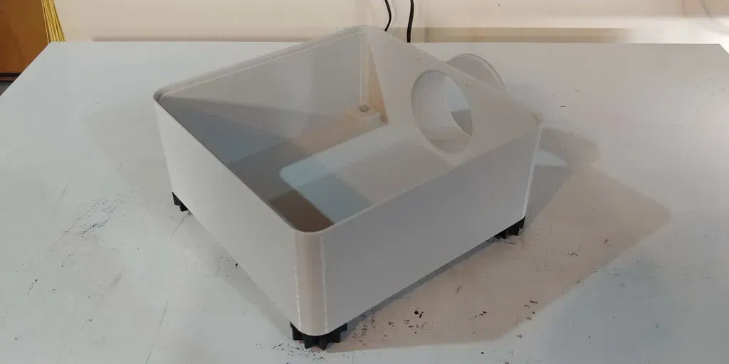 2. Thân chính của máy hút khói, phần đế mà máy in ngồi lên, được hiển thị ngược. Nó nên được in như đã cung cấp và vừa vặn trên bàn Prusa.