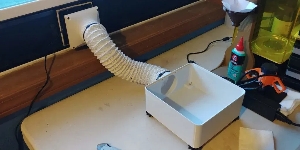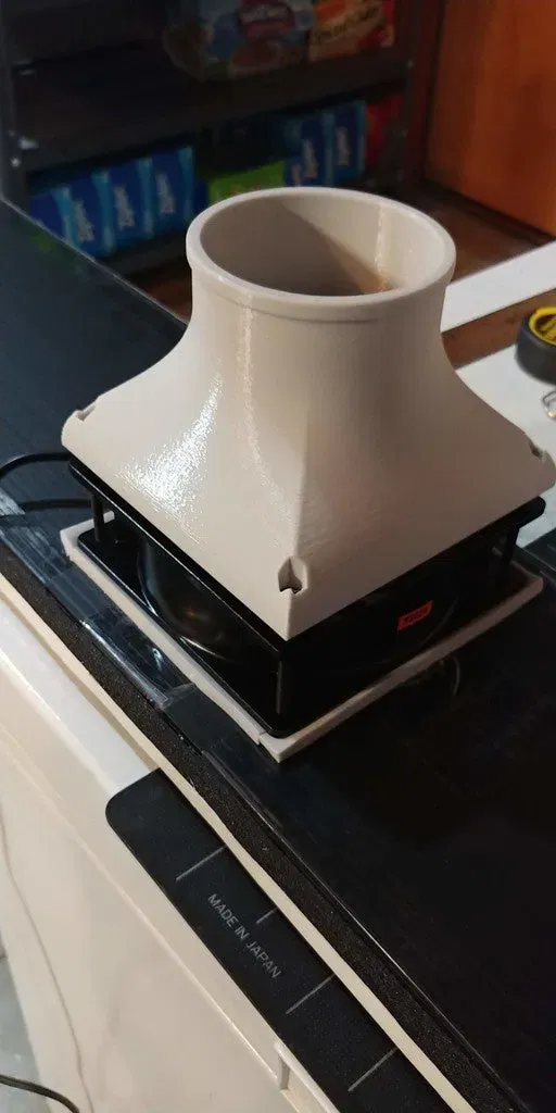 Cô ấy, người mà phải tuân theo, không đánh giá cao mùi hương, mặc dù có thông gió chấp nhận được. Để duy trì hạnh phúc trong gia đình, tôi đã cố gắng tìm một hệ thống hút khói. Trong quá trình tìm kiếm, tôi chỉ tìm thấy những giải pháp yêu cầu phải sửa đổi vỏ máy in, hoặc không hứa hẹn nhiều về việc hút khói thực sự. Đến khi tôi đã bắt đầu thiết kế của riêng mình, tôi mới tìm thấy một số lựa chọn khả thi. Nhưng, vì tôi đã đặt hàng một cái quạt và gần hoàn thành thiết kế của mình, tôi đã kiên trì. Cuối cùng, tôi có một máy hút khói không thay đổi động lực không khí của máy in, không yêu cầu sửa đổi nào cho máy in mà không dễ dàng đảo ngược, và đã làm rất tốt trong việc giữ mùi hương ở mức tối thiểu (cho đến nay). Với một số ống thông gió linh hoạt 3 inch và một cái quạt 120mm nào đó, bạn nên có thể in cái này, đặt máy in của bạn lên đó, và cái quạt ở cửa sổ, và tiếp tục sống cuộc sống hạnh phúc mà bạn muốn với người vợ hạnh phúc của mình.